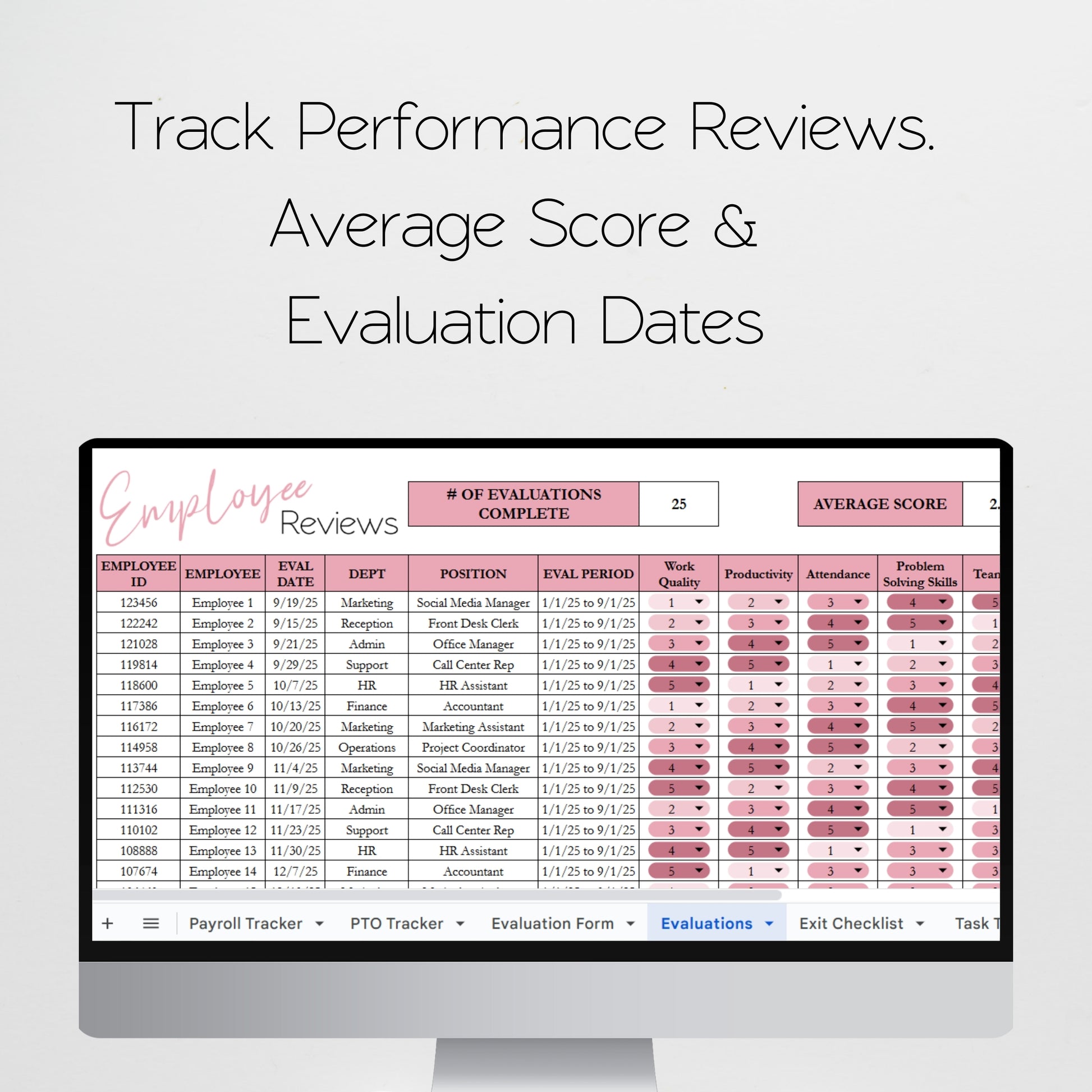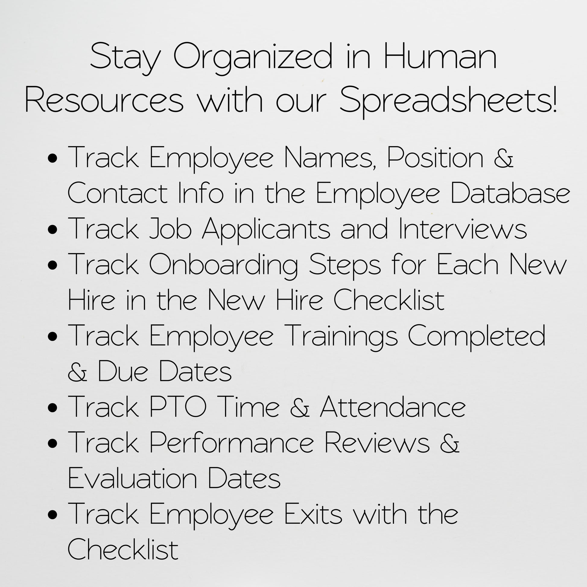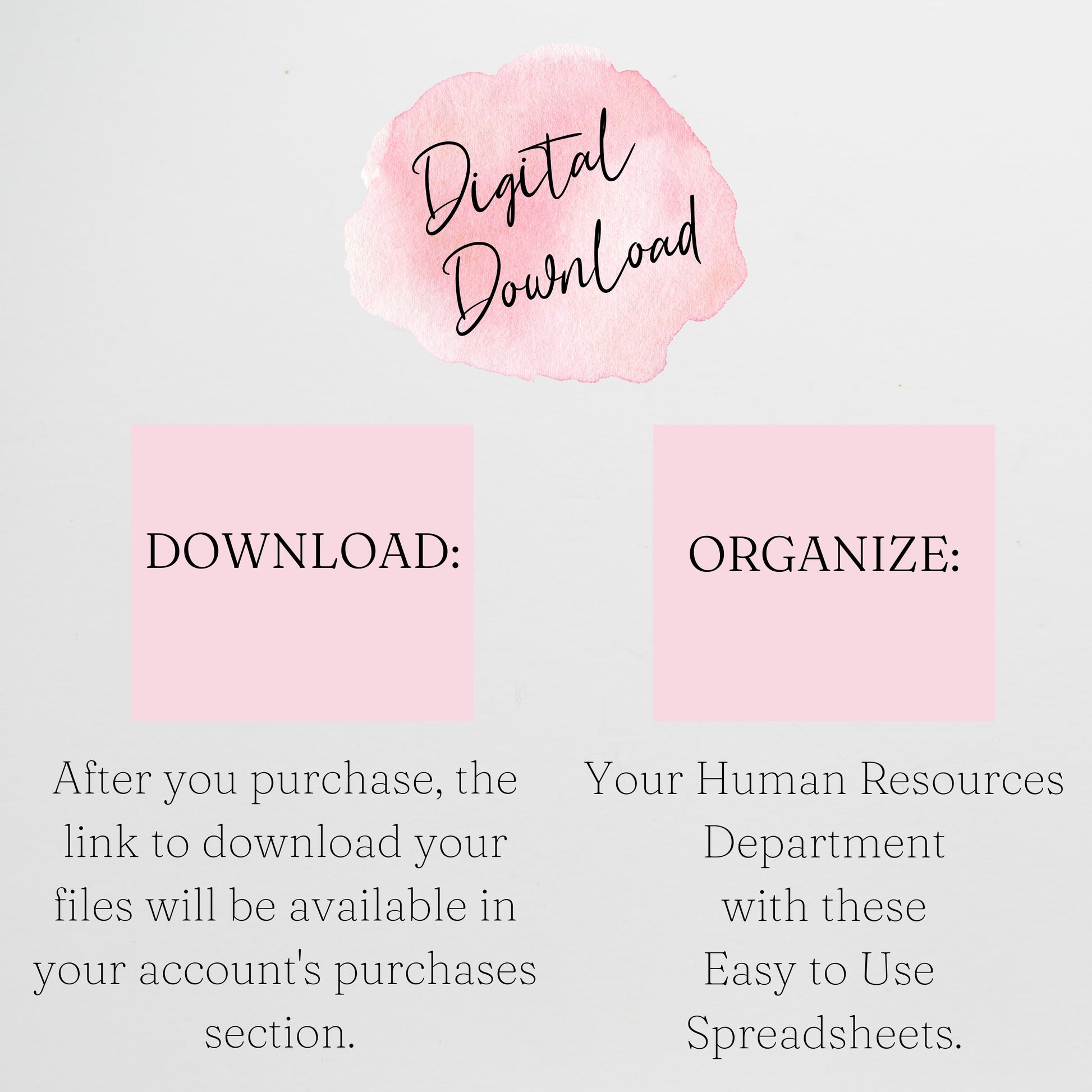 You can stay organized as a human resources manager with this HR template bundle. This human resource management Google Sheet and Excel Spreadsheet Template is perfect to track PTO time, payroll, new hires, recruiting and more.  You can track your employee's information, hire date, and attendance. You can make sure to track if employees come in on time, track their vacation and sick days. You can track their job quality with the employee performance tracker. There's a printable and editable form that you can customize for your business. With 16 spreadsheets in all, you can stay organized.Â