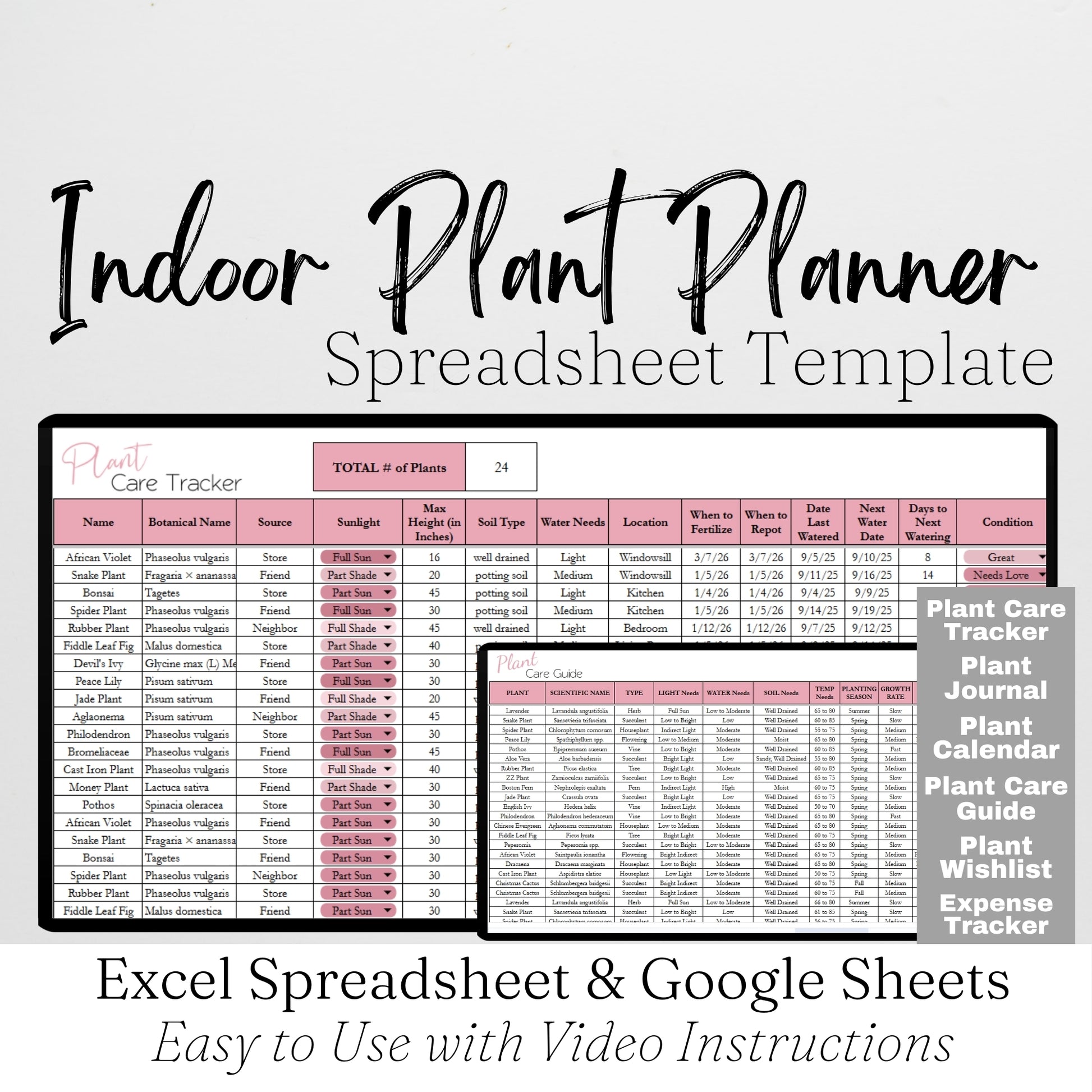 Indoor Plant Planner Template Excel Spreadsheet and Google Sheets