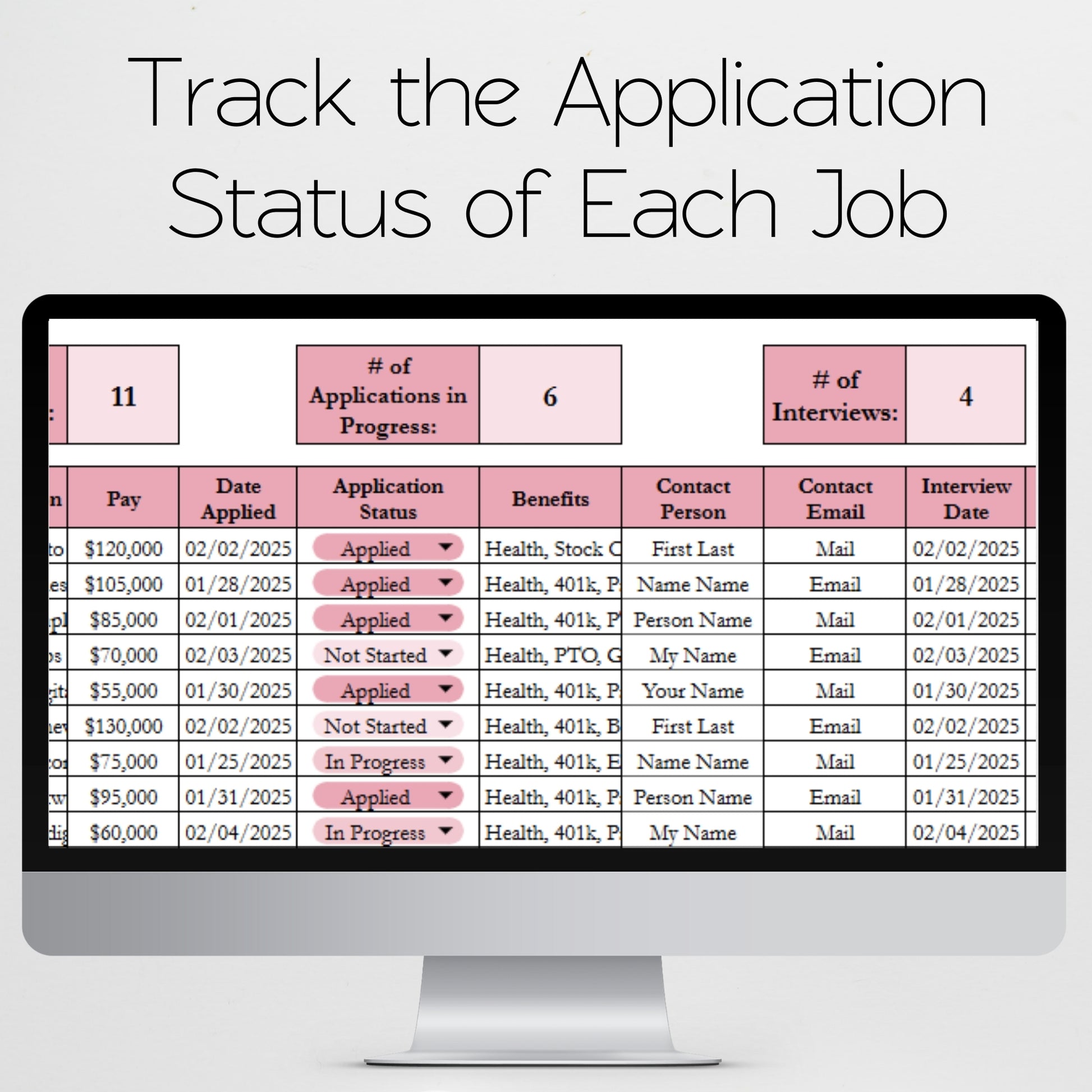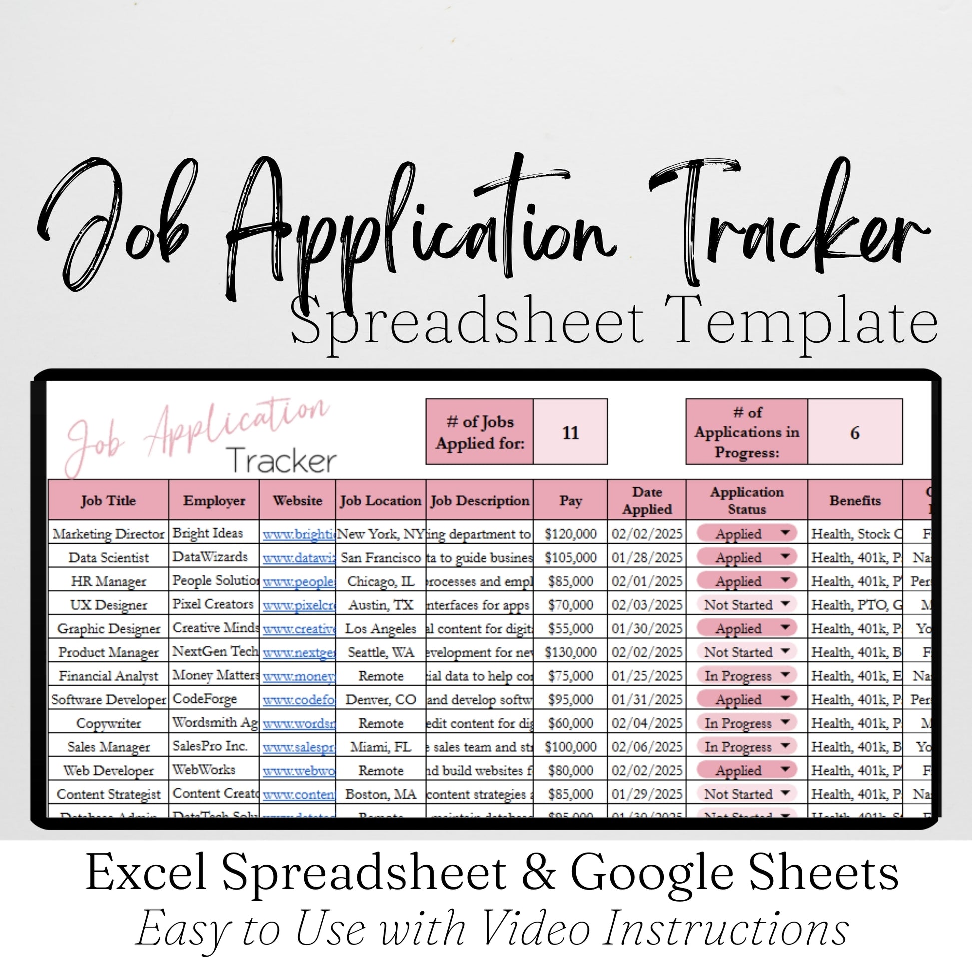 Job Application Tracker Excel Spreadsheet and Google Sheets Template