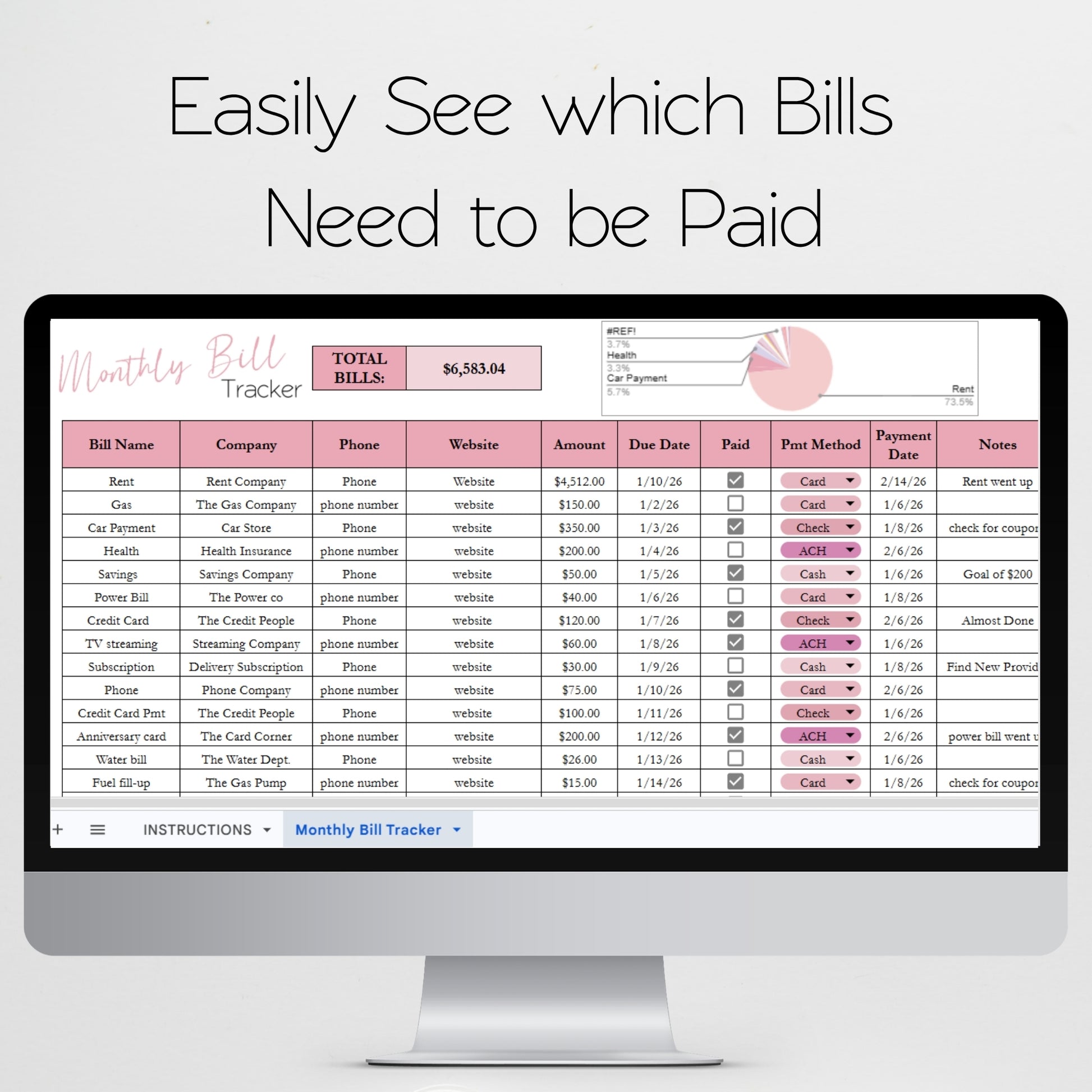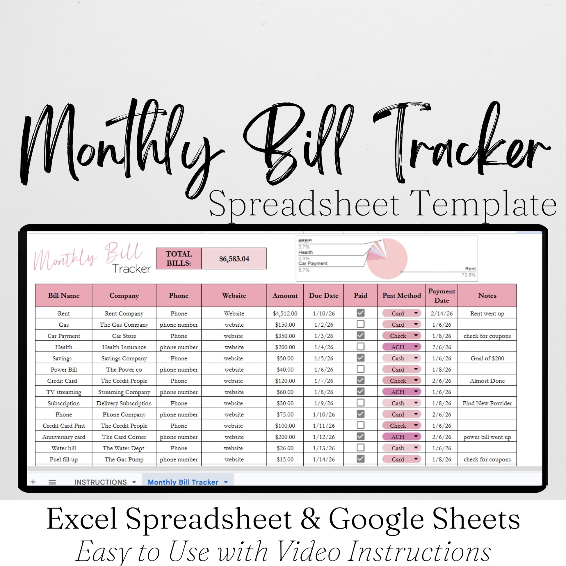 Stay on top of your finances with this Monthly Bill Tracker Template, compatible with both Google Sheets and Excel. Easily organize and monitor your monthly bills in one simple spreadsheet template. This easy to use budget template can help you easily manage your finances.