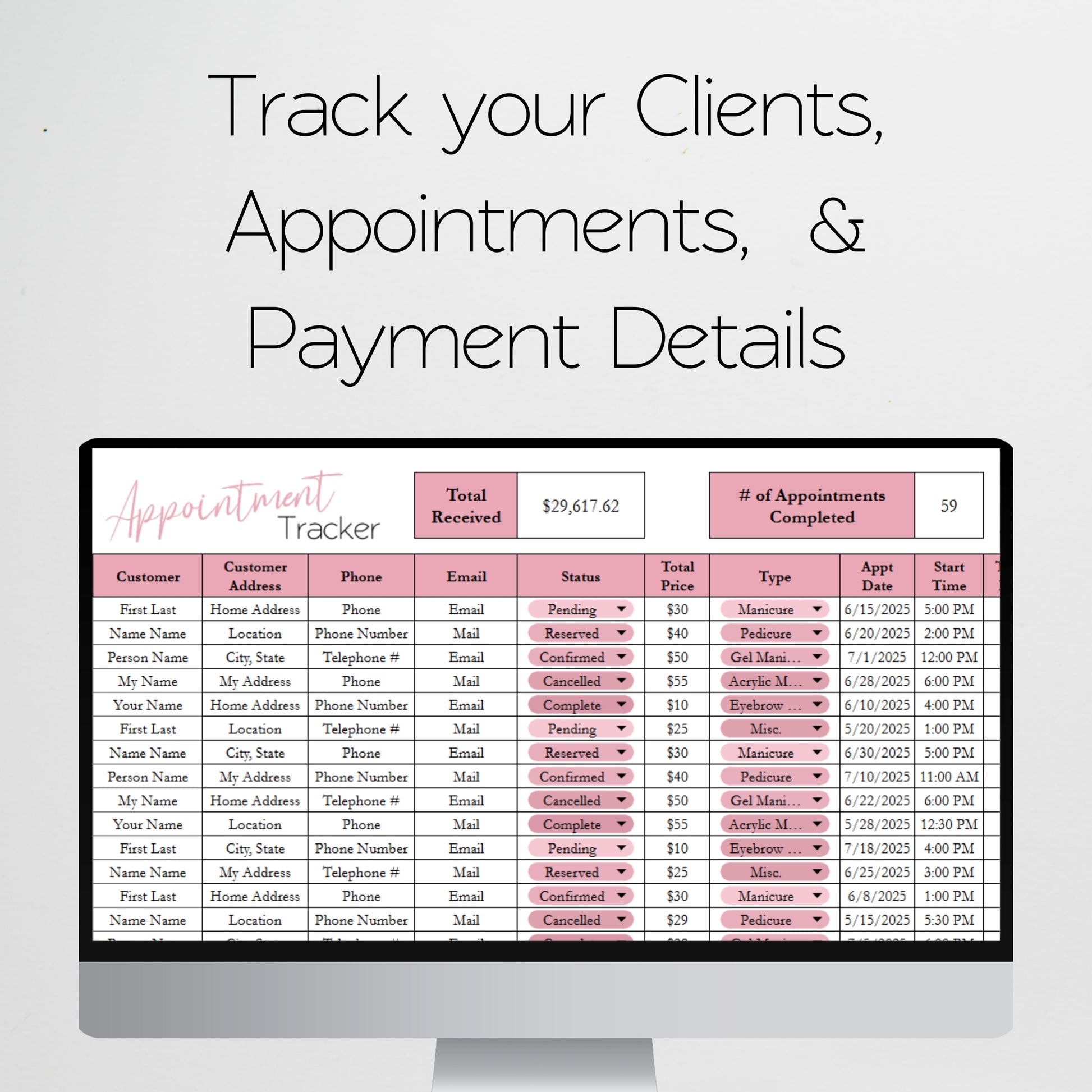 Nail Salon Business Template Bundle Google Sheet and Excel Spreadsheet