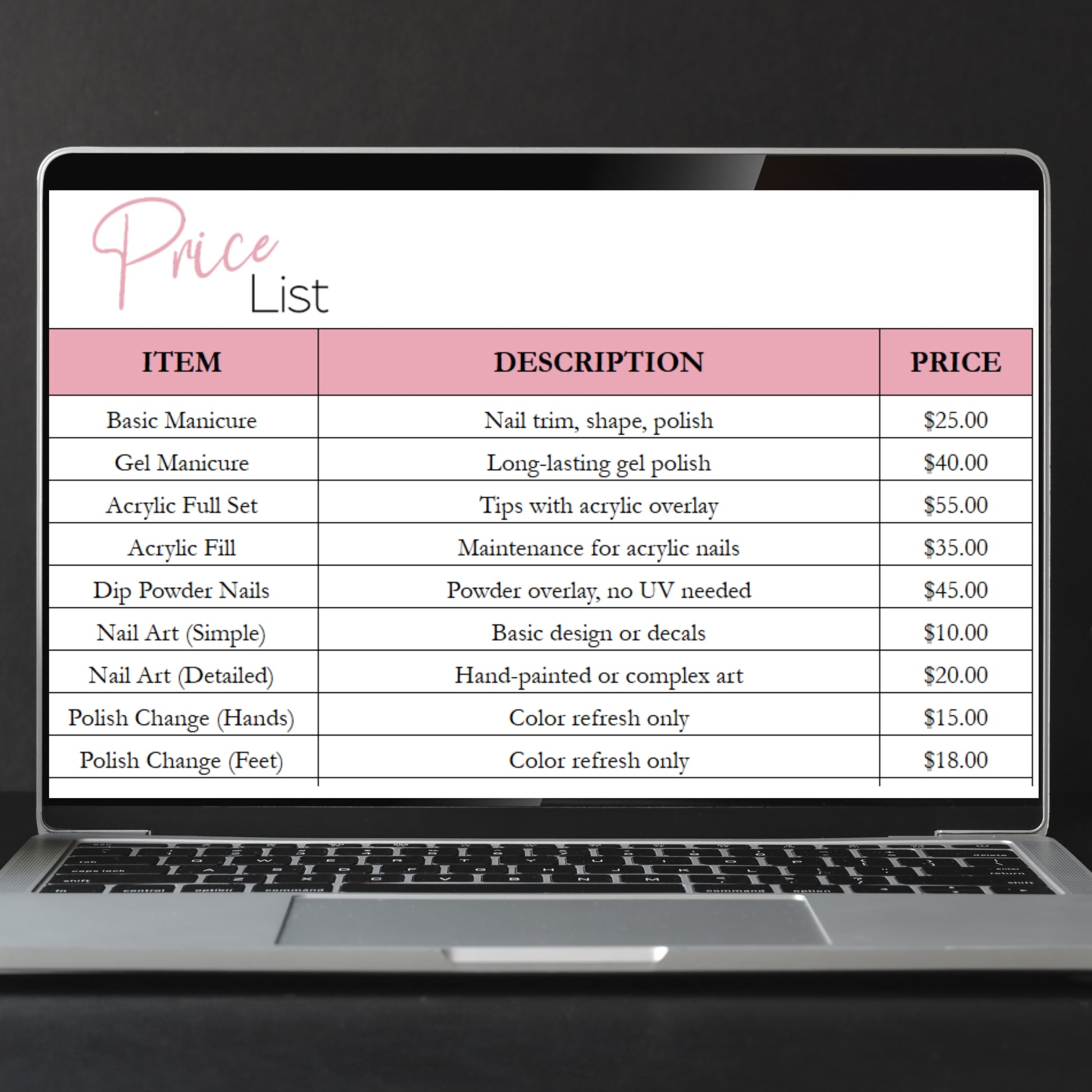 This nail salon business template bundle will help you to track your nail appointments, nail salon inventory, and income and expenses for your business. This all in one salon planner is perfect for you to track your orders, client contact information, and includes a handy price list to print out. Â