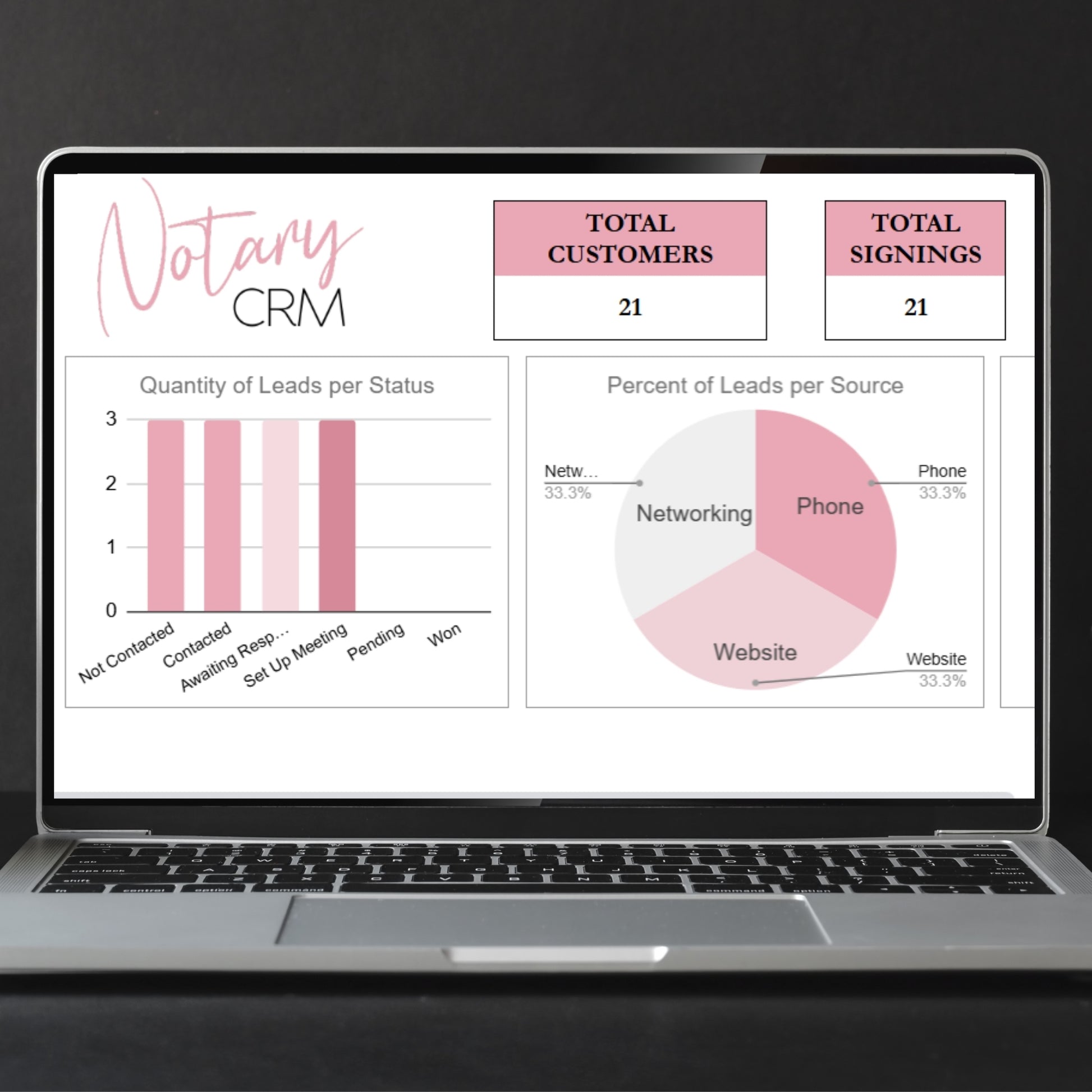 Keep your notary leads organized with this Notary CRM template for Google Sheets and Excel. This notary public CRM Excel Spreadsheet and Google Sheet helps you to track your client database, track followups, number of signings completed, and revenue made. If you are a mobile notary, apostille, or loan signing agent this client tracker is perfect for you.Â