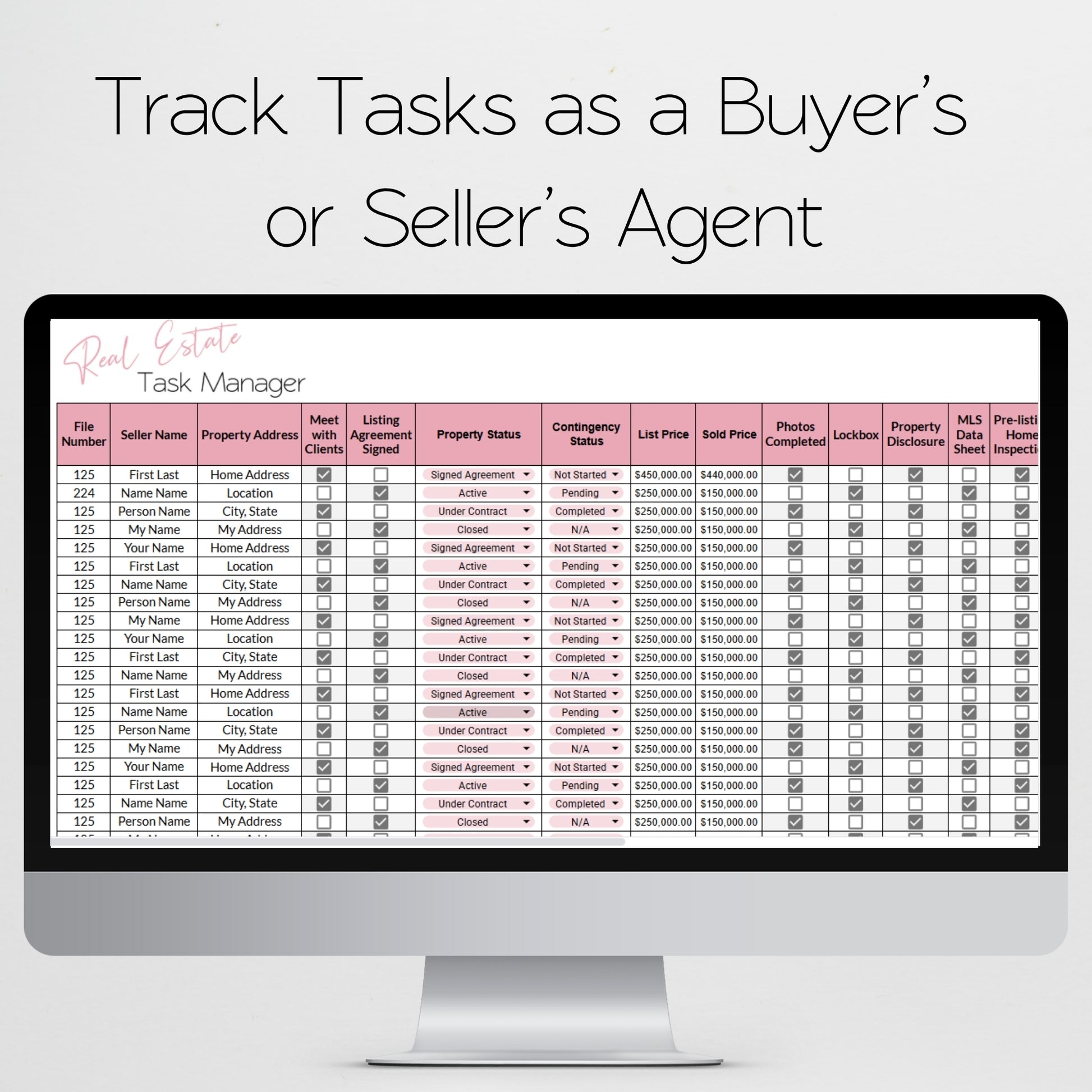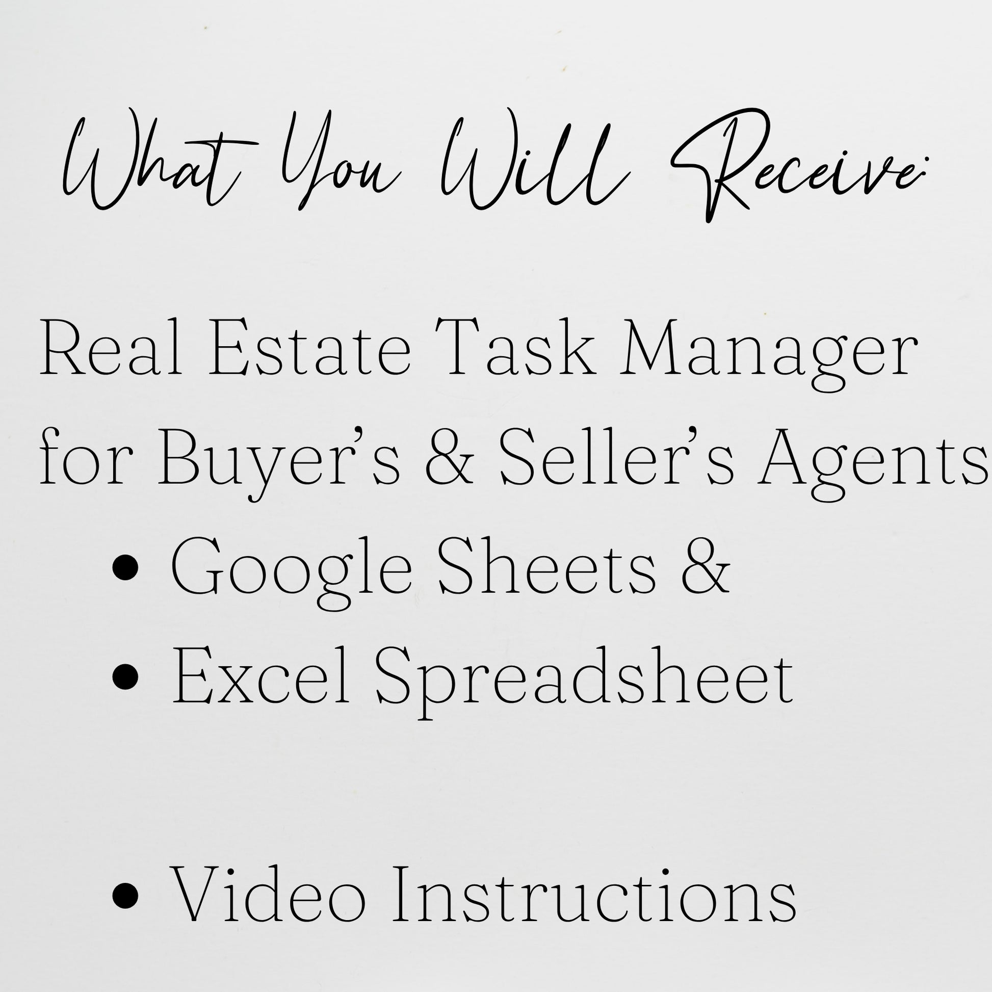 This is an Excel Spreadsheet that helps you to track your real estate transactions to keep up with tasks from start to closing. You can check off your tasks, and put key dates, names, addresses, and other important information along the way.