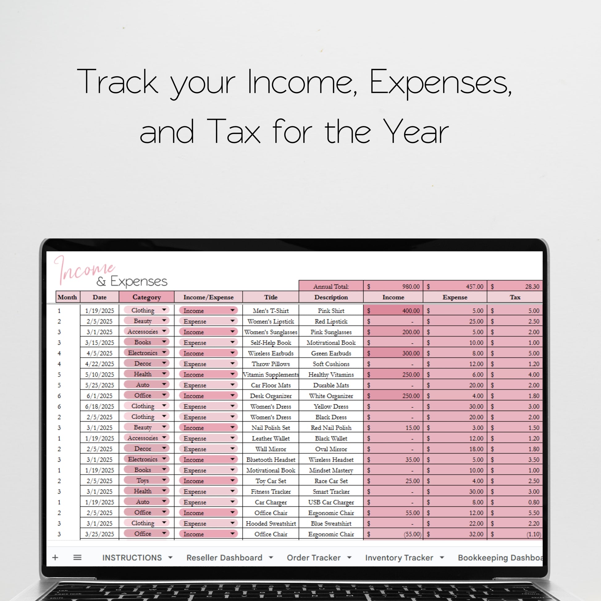 This reselling business spreadsheet is designed to help resellers keep track of all aspects of their business in one place. This reseller tool includes sections for managing orders, inventory tracker, profit margin calculator, return tracker, marketing tacker, and even mileage for tax purposes. Whether you're tracking expenses, calculating profits, or monitoring your marketing, this reseller spreadsheet makes it easy to stay organized and on top of your reselling game. Watch my video instructions for learning how to organize your reselling business using my small business spreadsheet template.