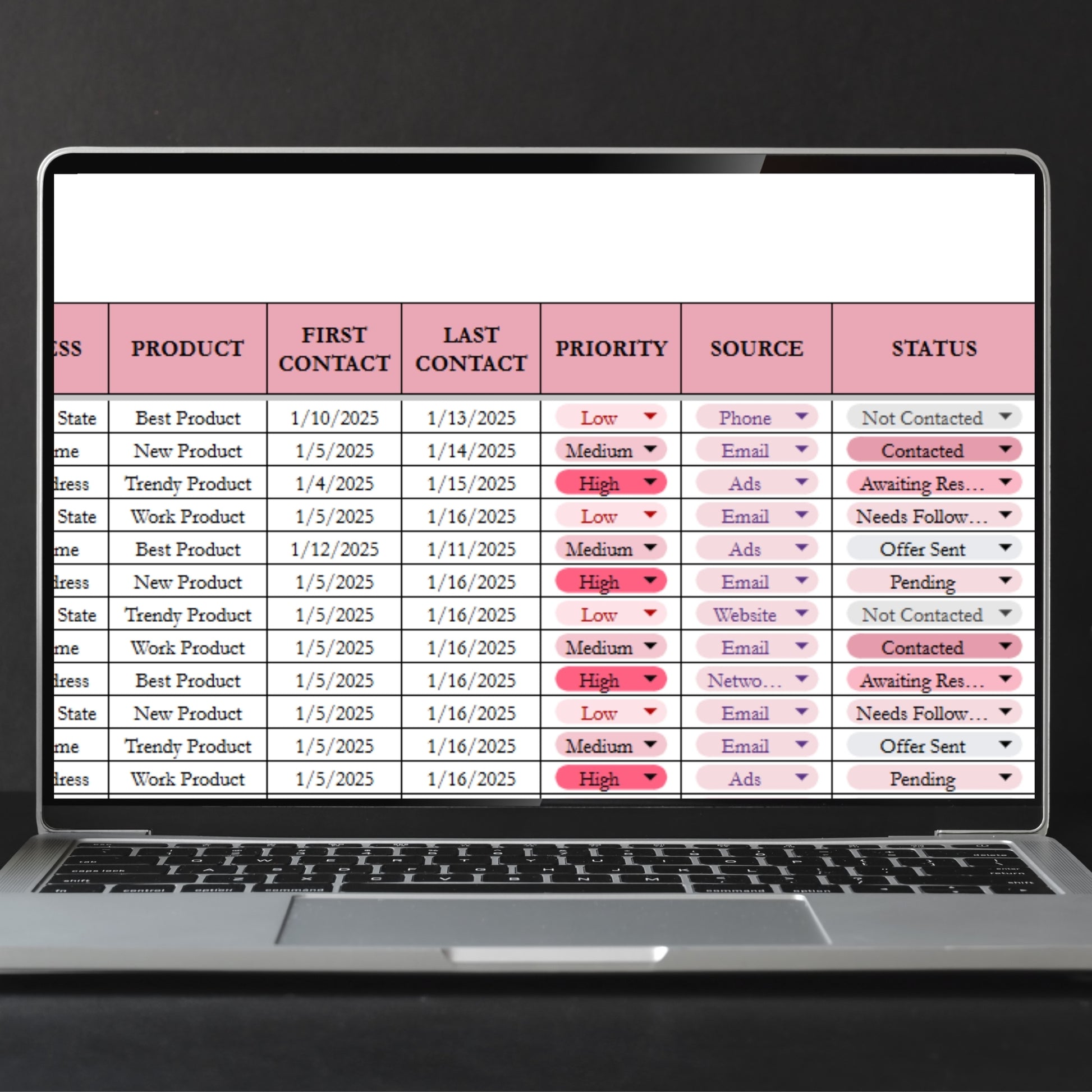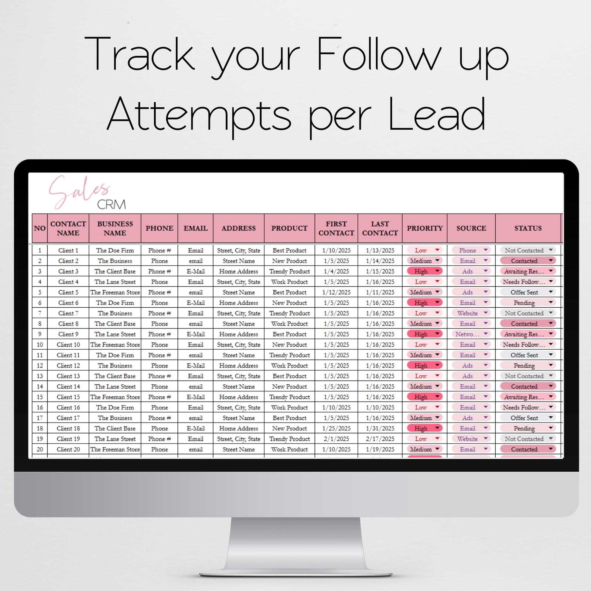 This is an Excel Spreadsheet that you can use to track your clients and customers as you go through the sales process. Know when to follow up with the client, who is the most important to reach out to, and all of their contact information in one place for you in this Sales CRM template. Even track your sales for the month and the year.