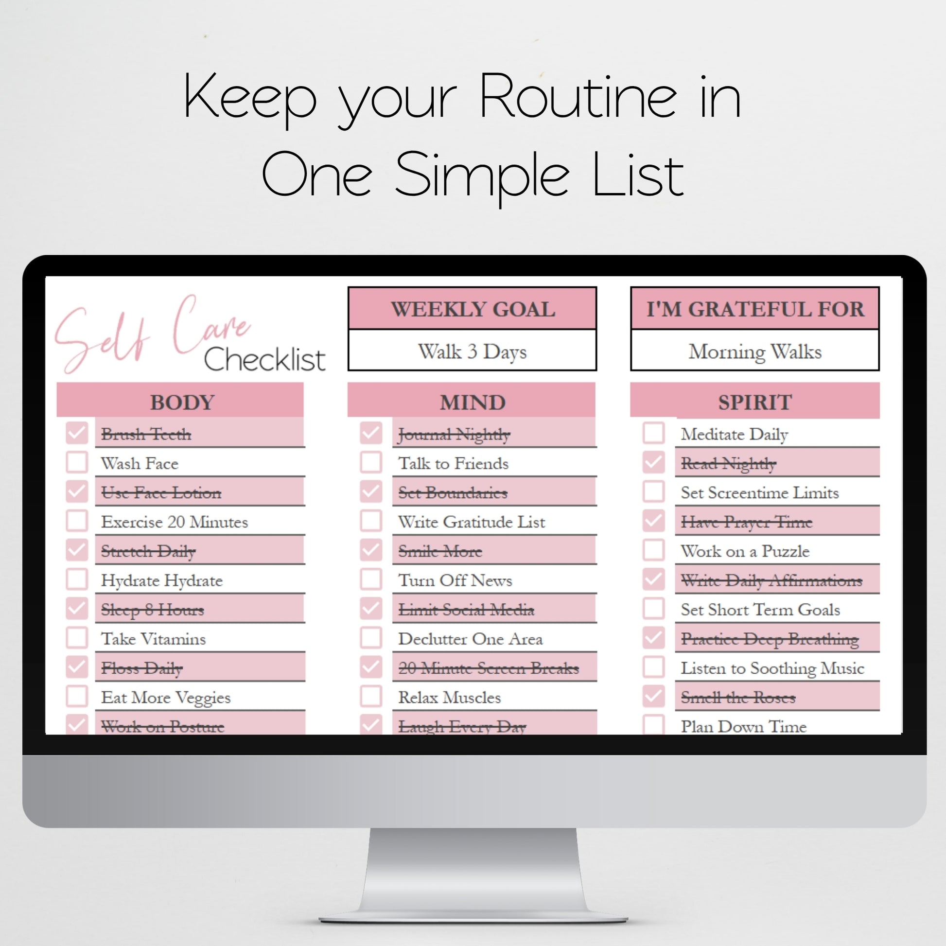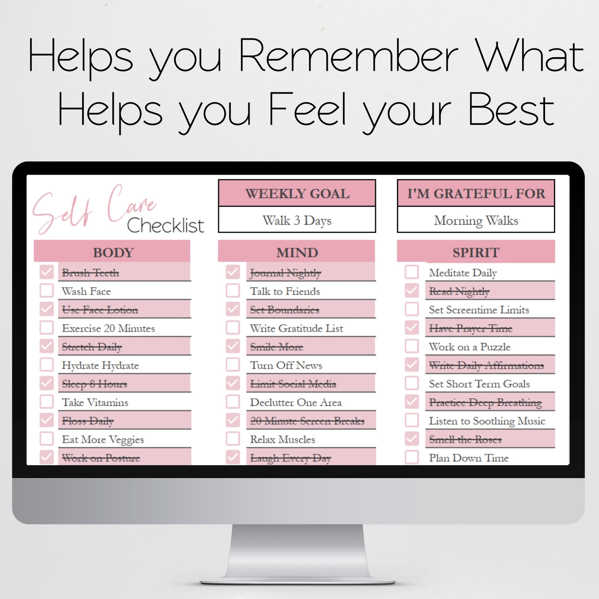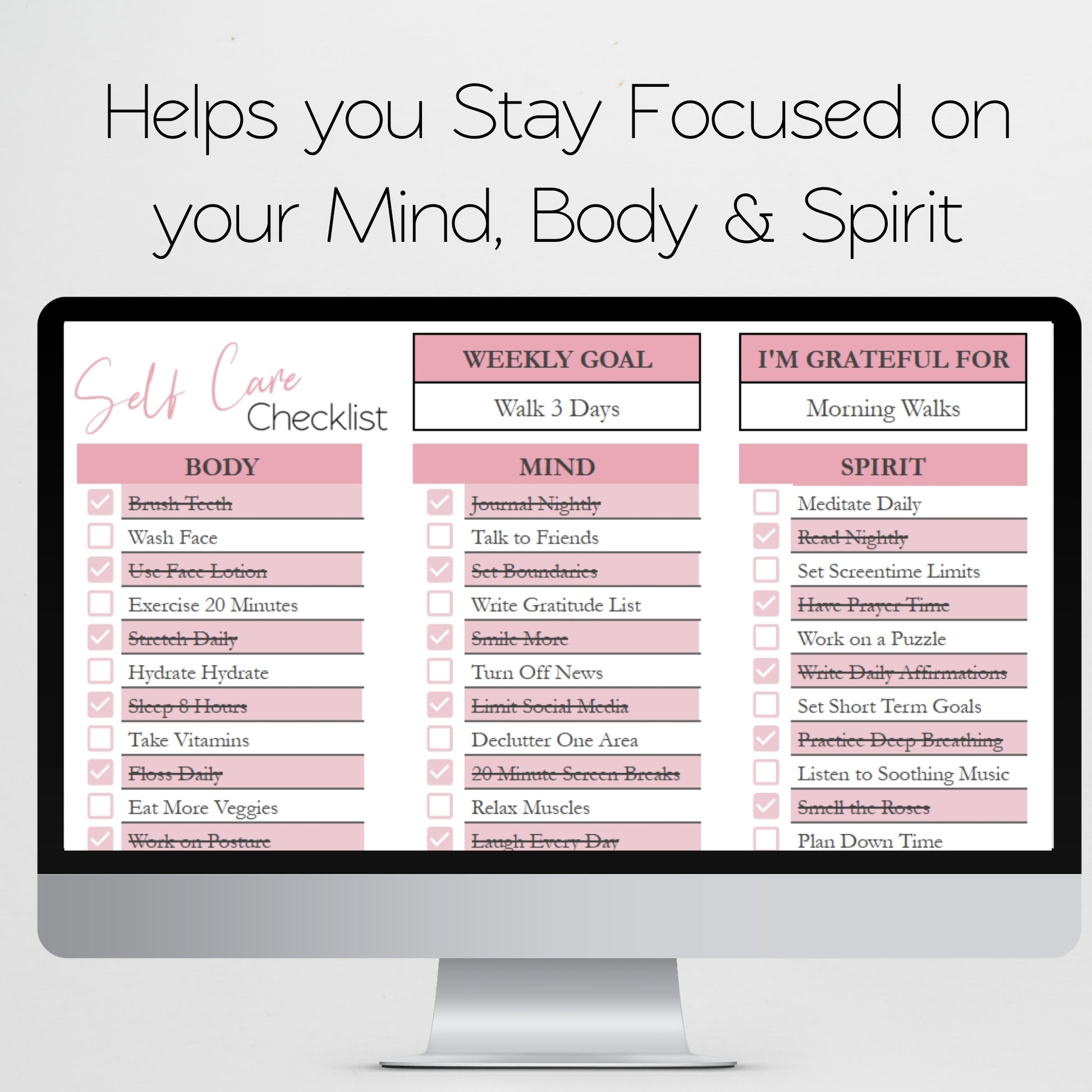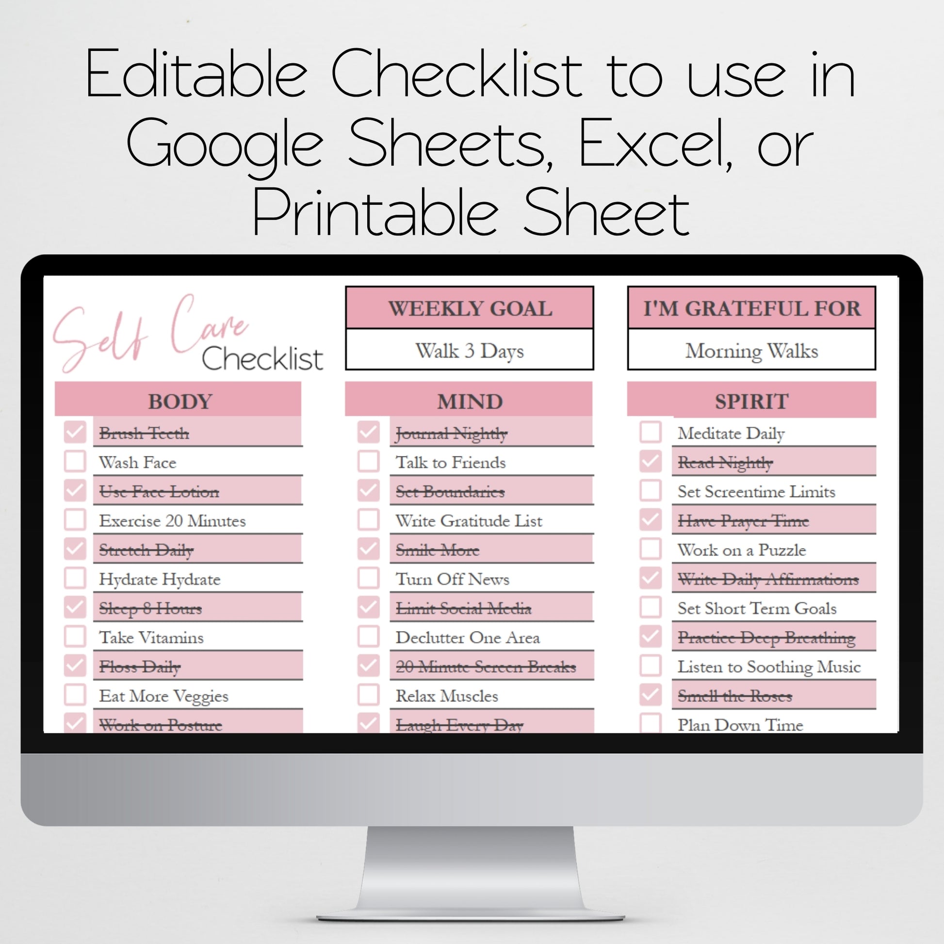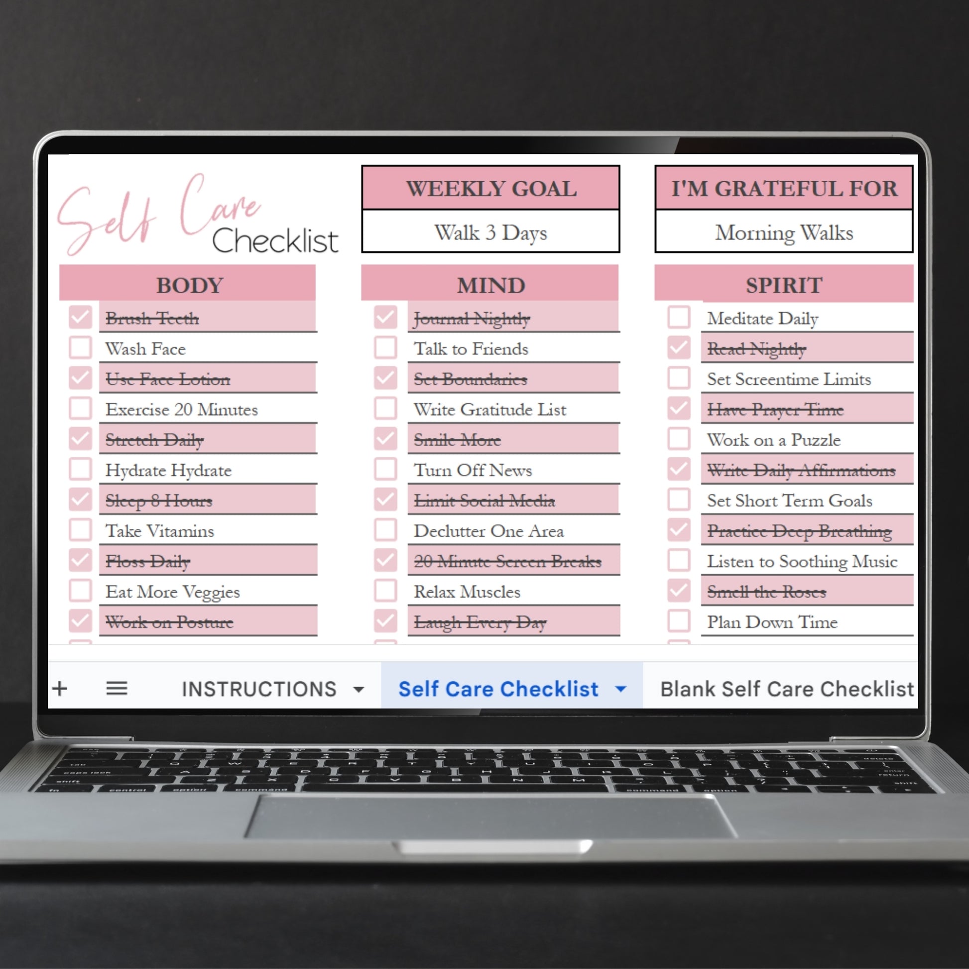 Self Care Checklist Template for Google Sheets and Excel Spreadsheet