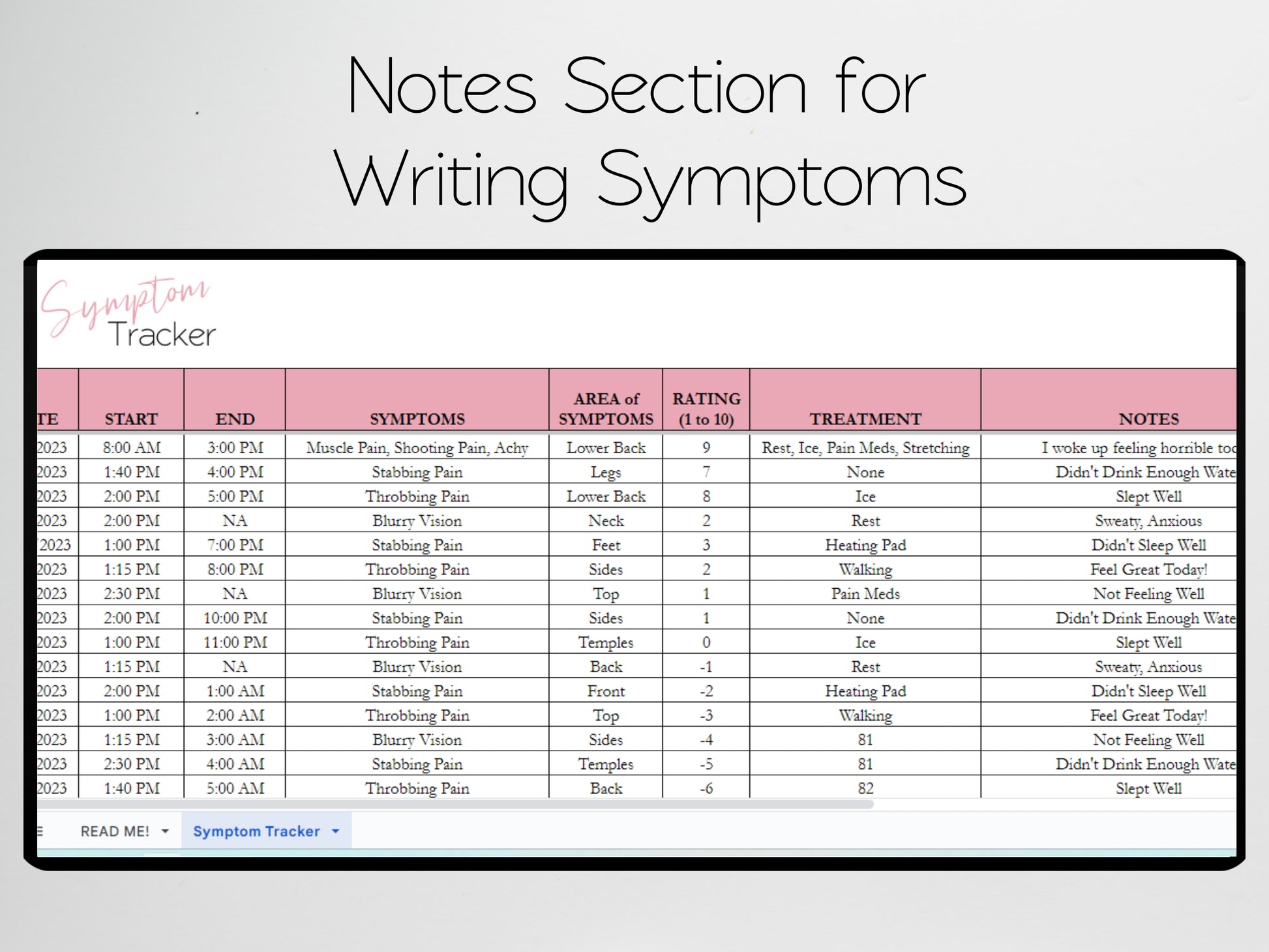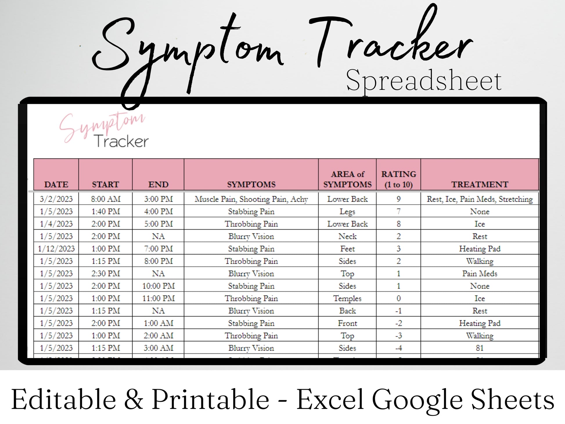 Symptom Tracker Template Google Sheets and Excel Spreadsheet
