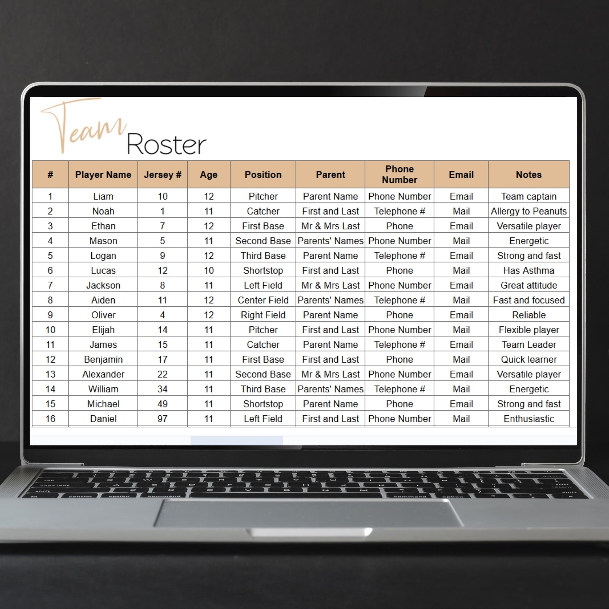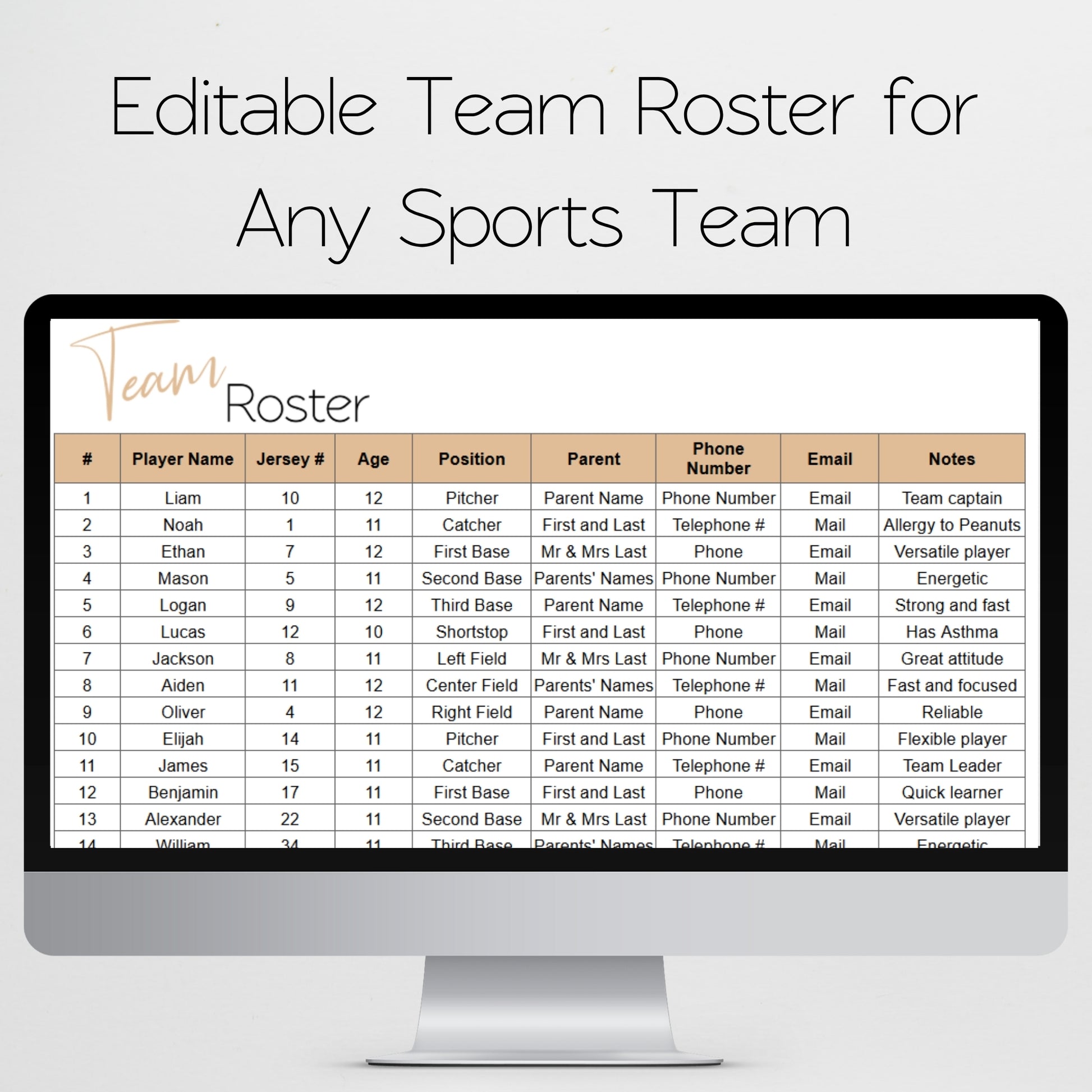 Team Roster Template Google Sheets and Excel Spreadsheet