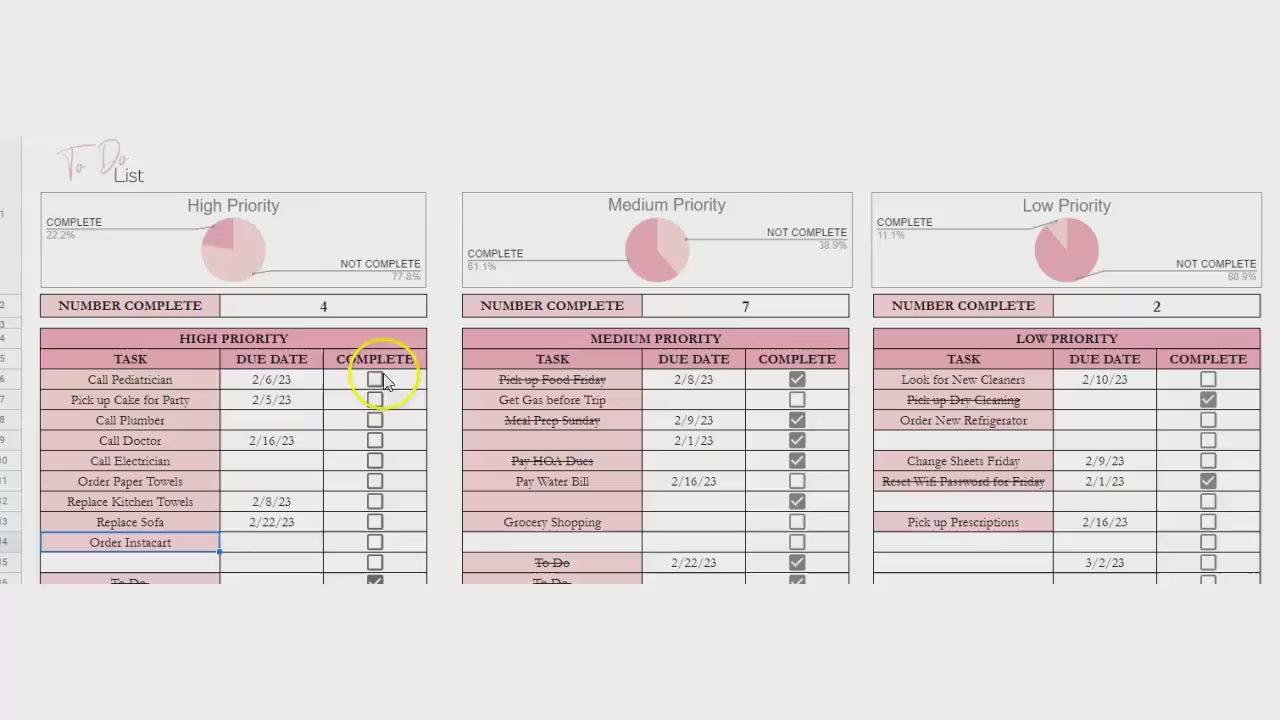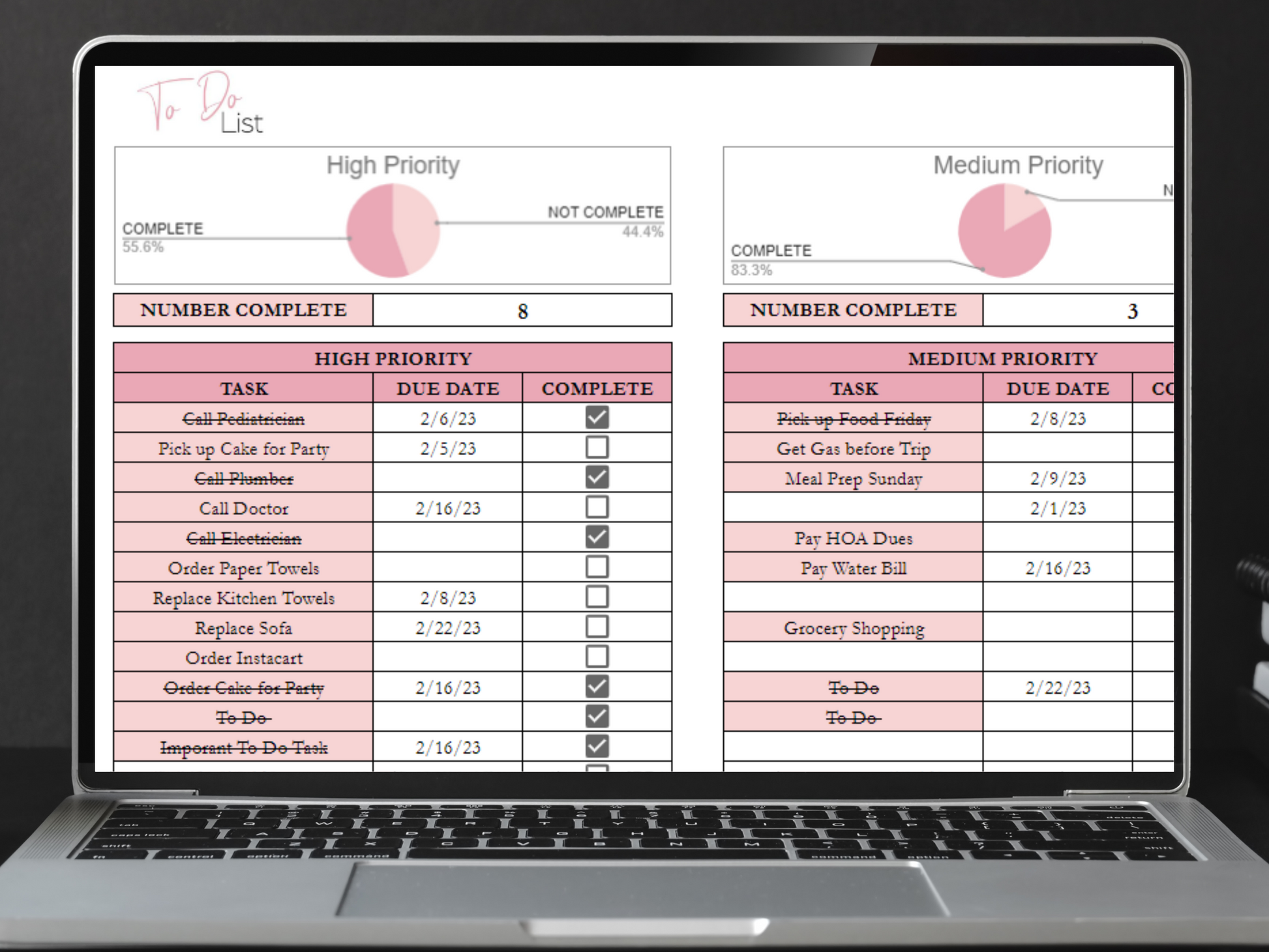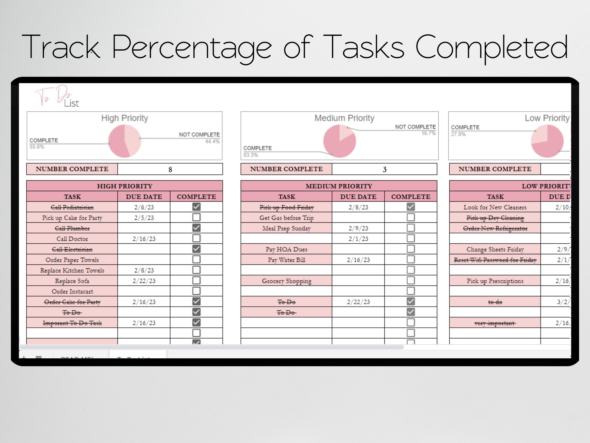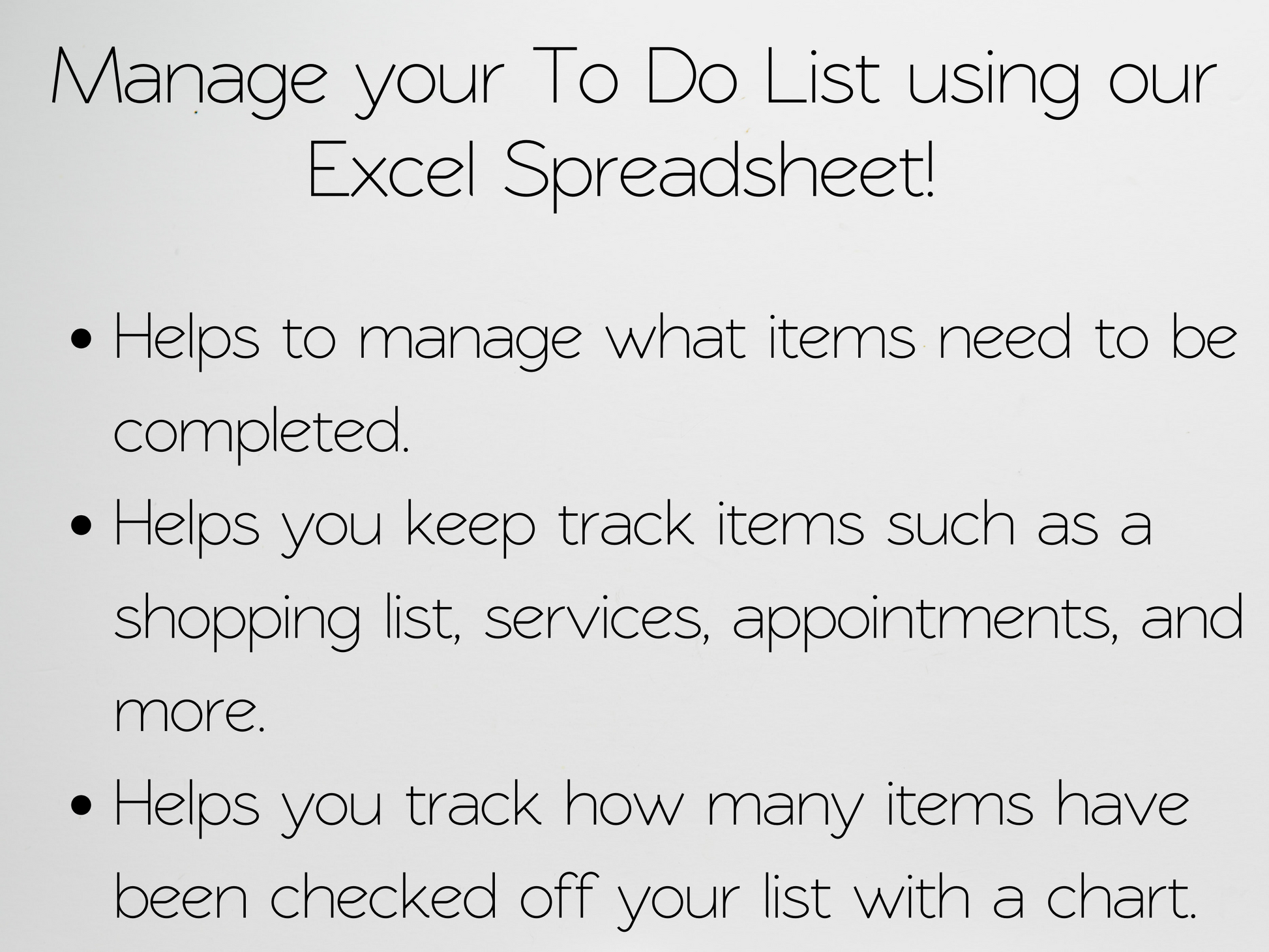 This is an Excel Spreadsheet that helps you to manage and keep track of your daily, weekly, or monthly tasks. Our to-do list spreadsheet template is an easy-to-use, fully customizable tool that helps you prioritize and stay organized. Stay on top of your tasks and reach your goals with our to-do list spreadsheet.