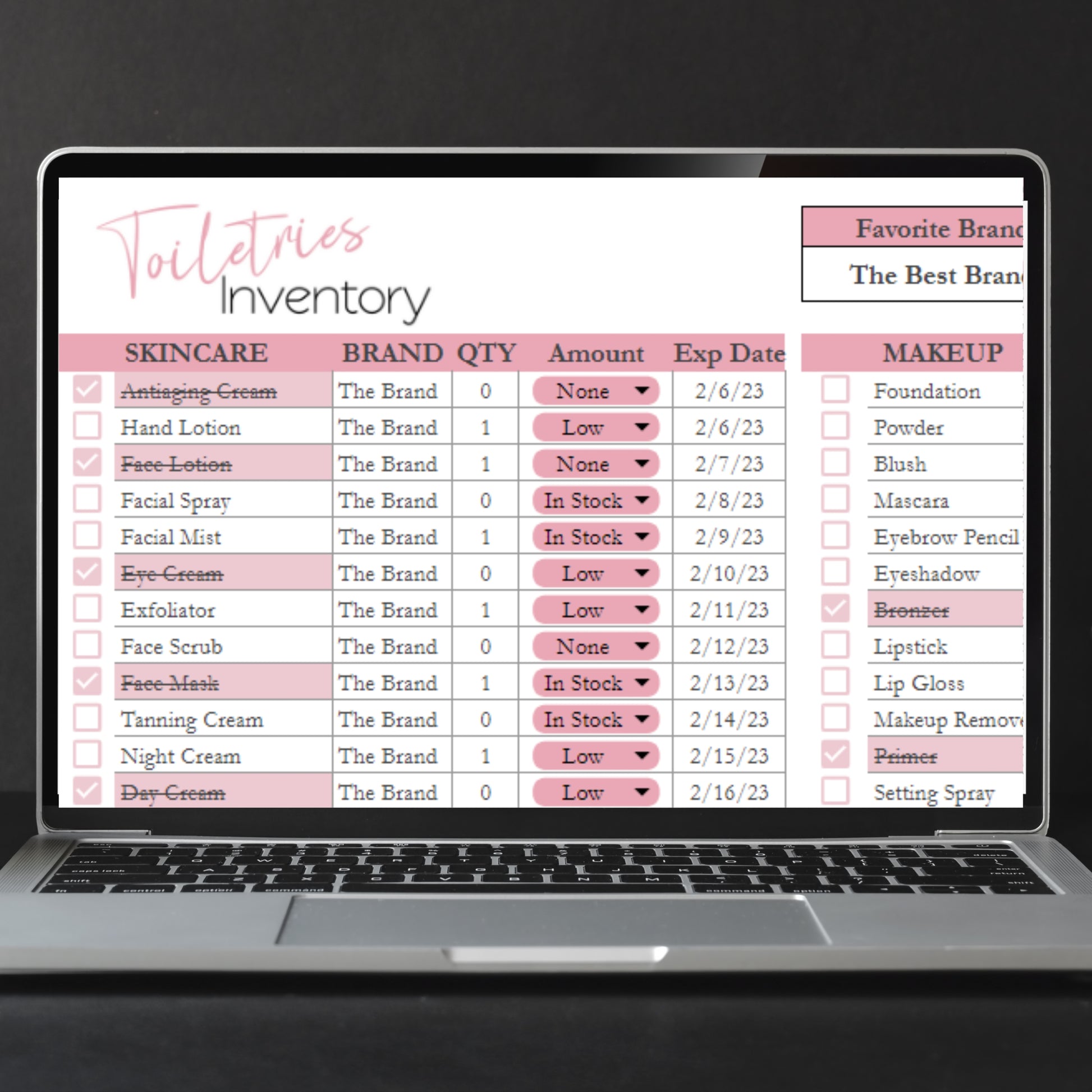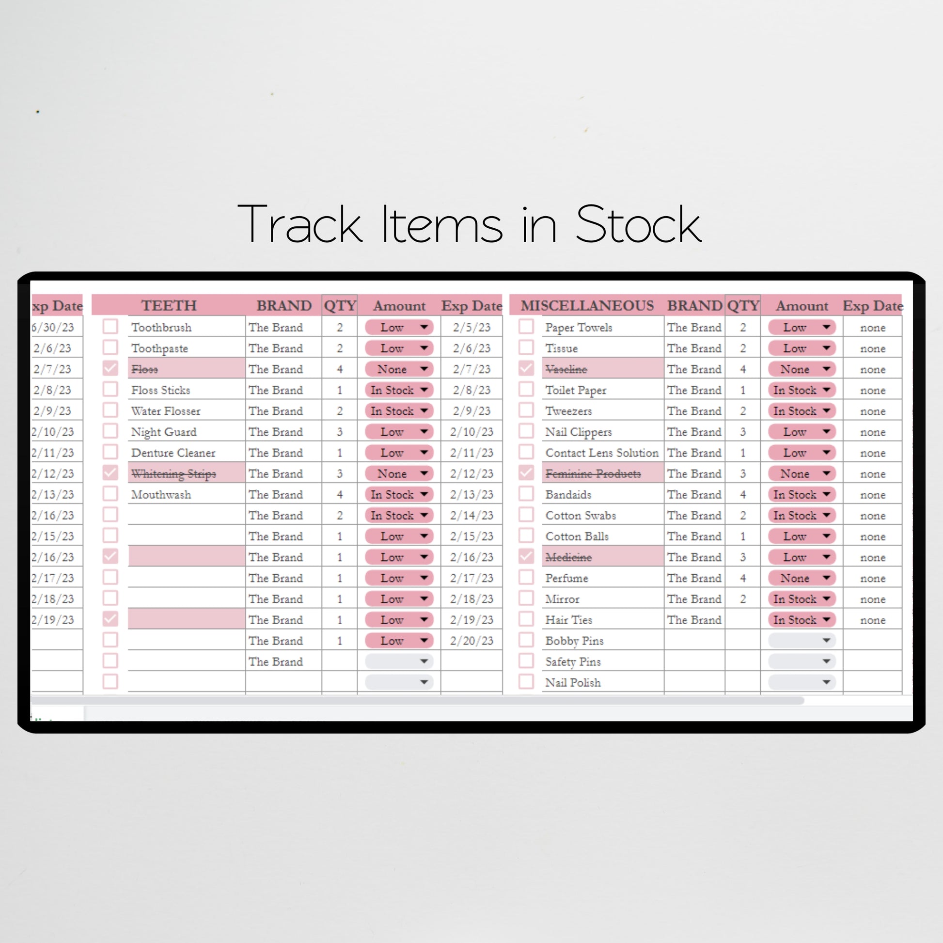 Toiletries Inventory Tracker Template Google Sheets and Excel Spreadsheet