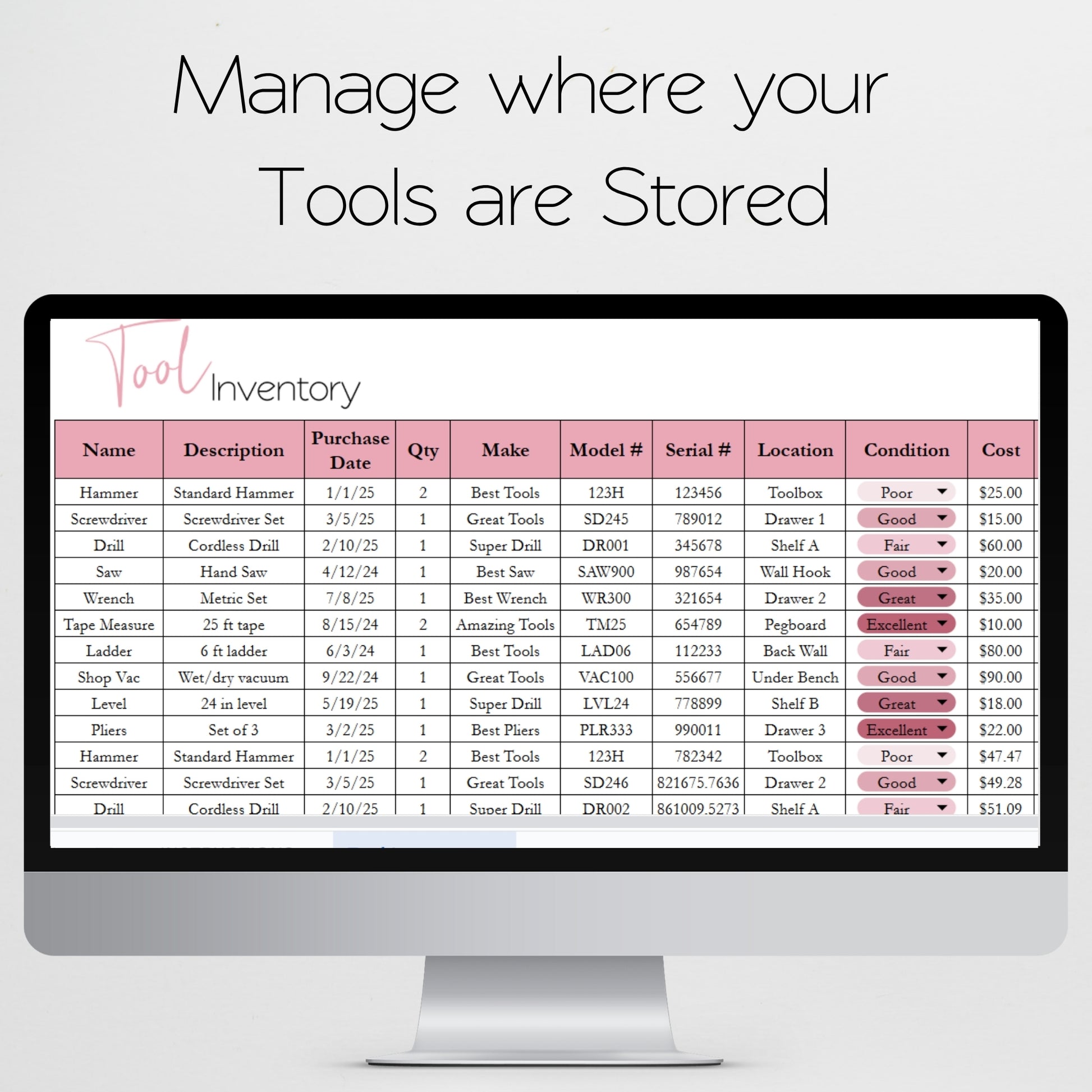 Tool Inventory Template for Google Sheets and Excel Spreadsheet