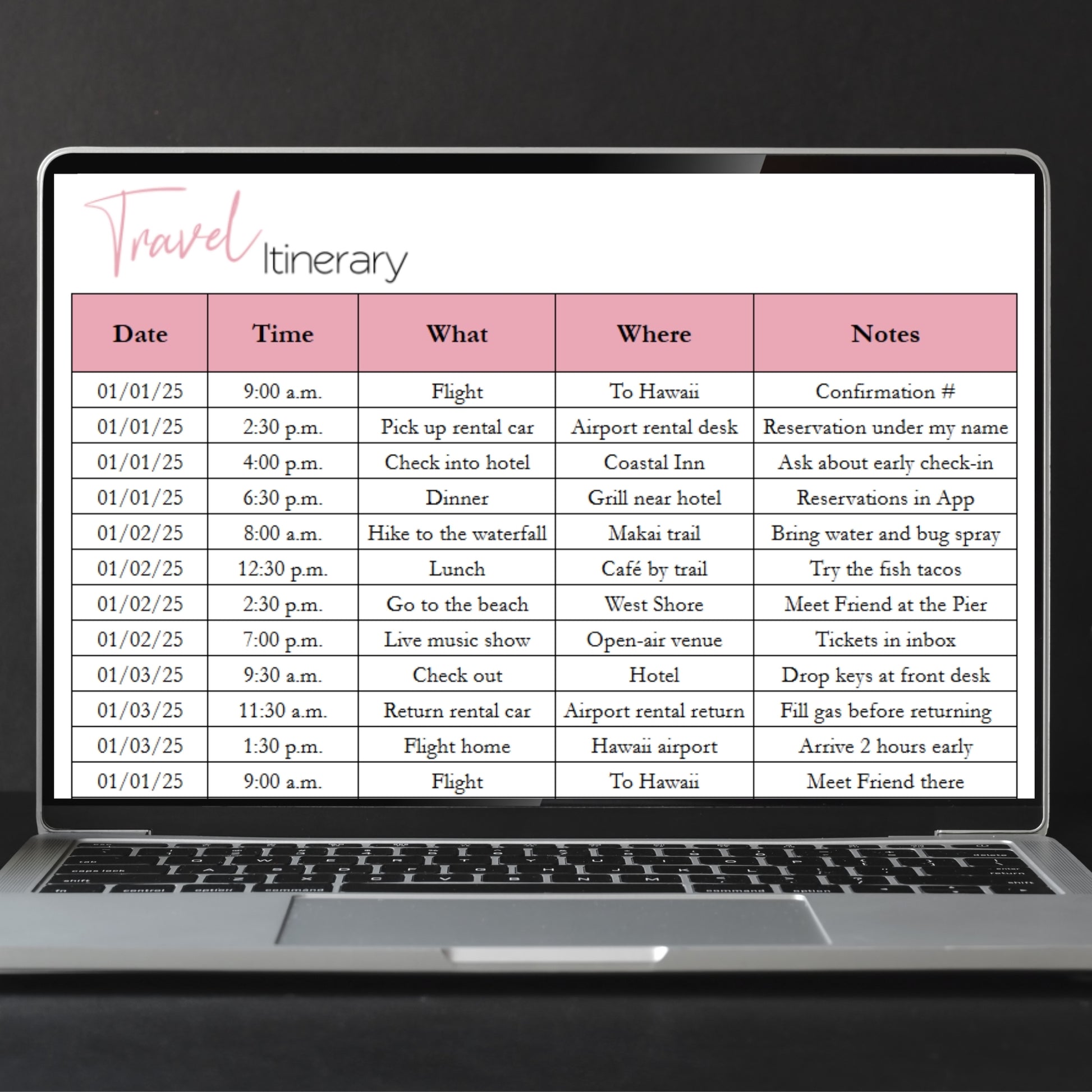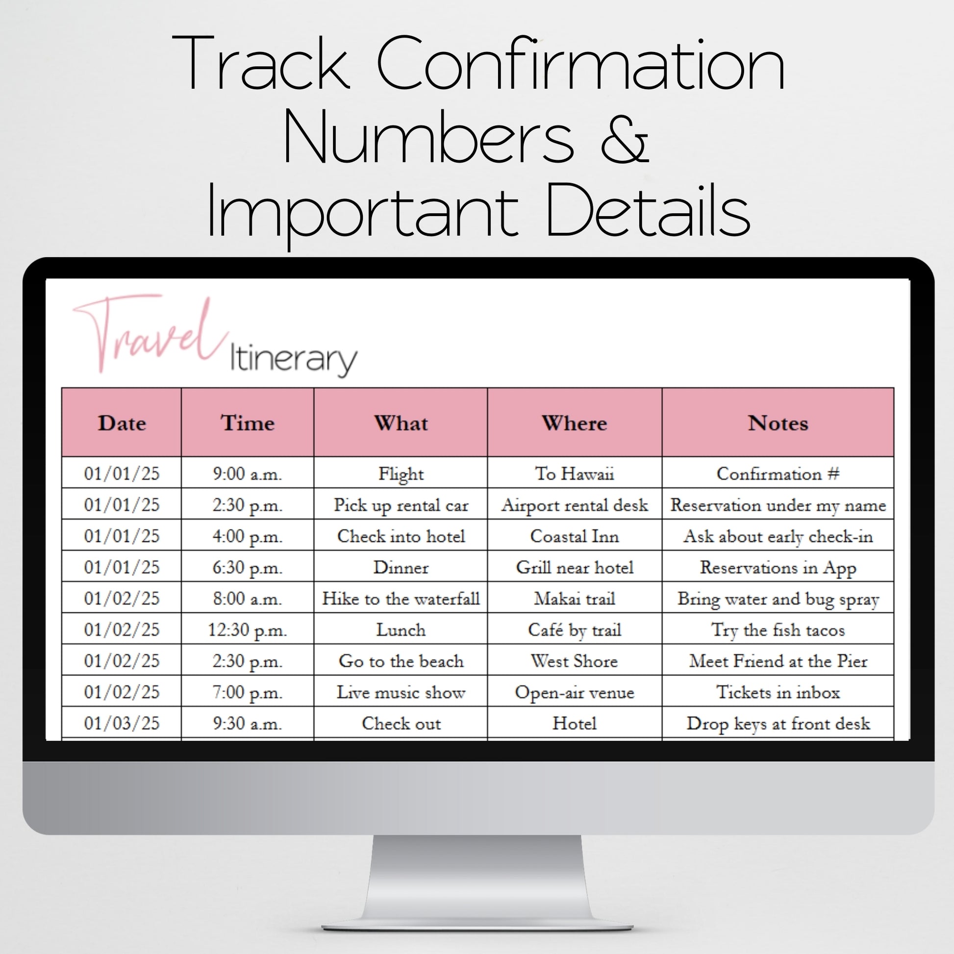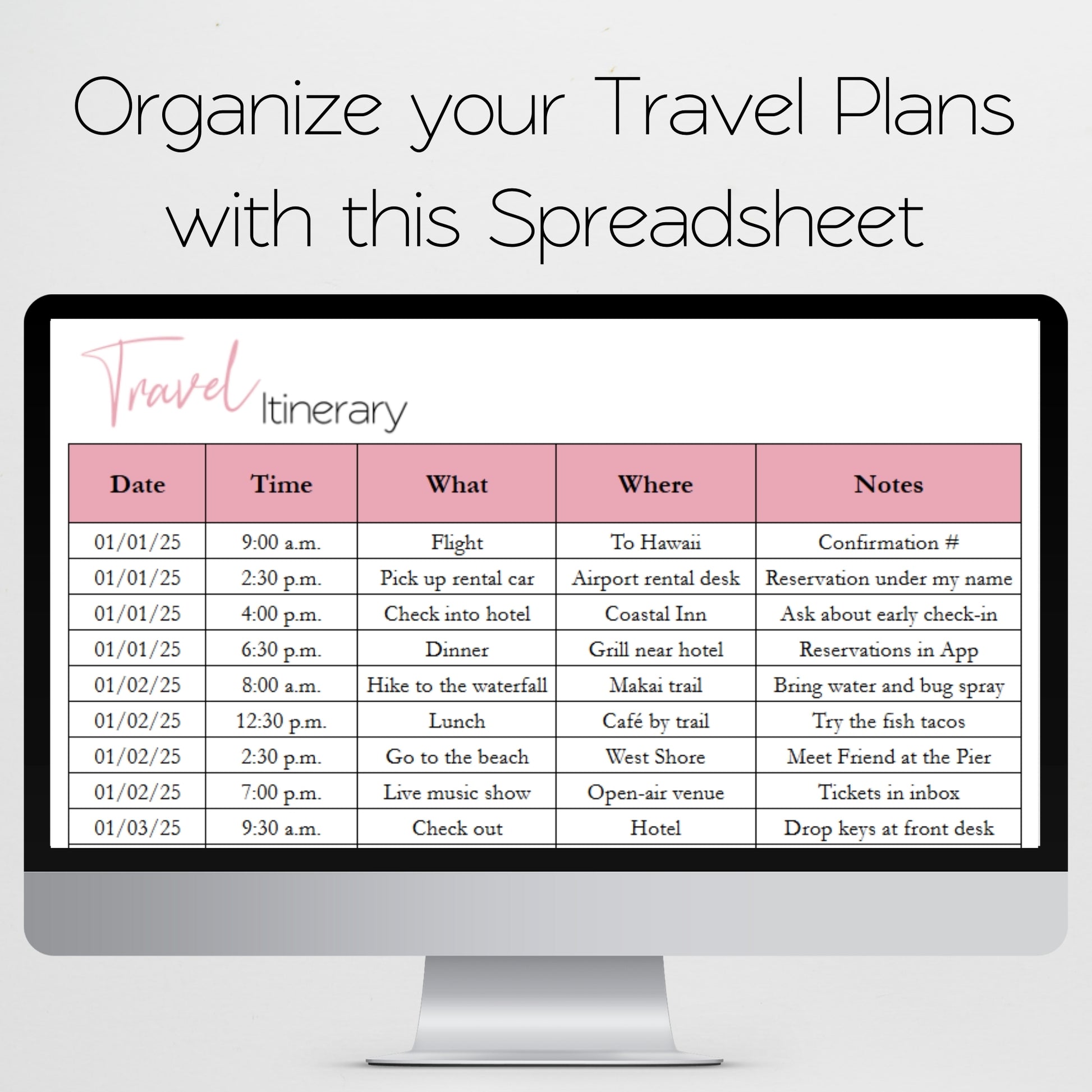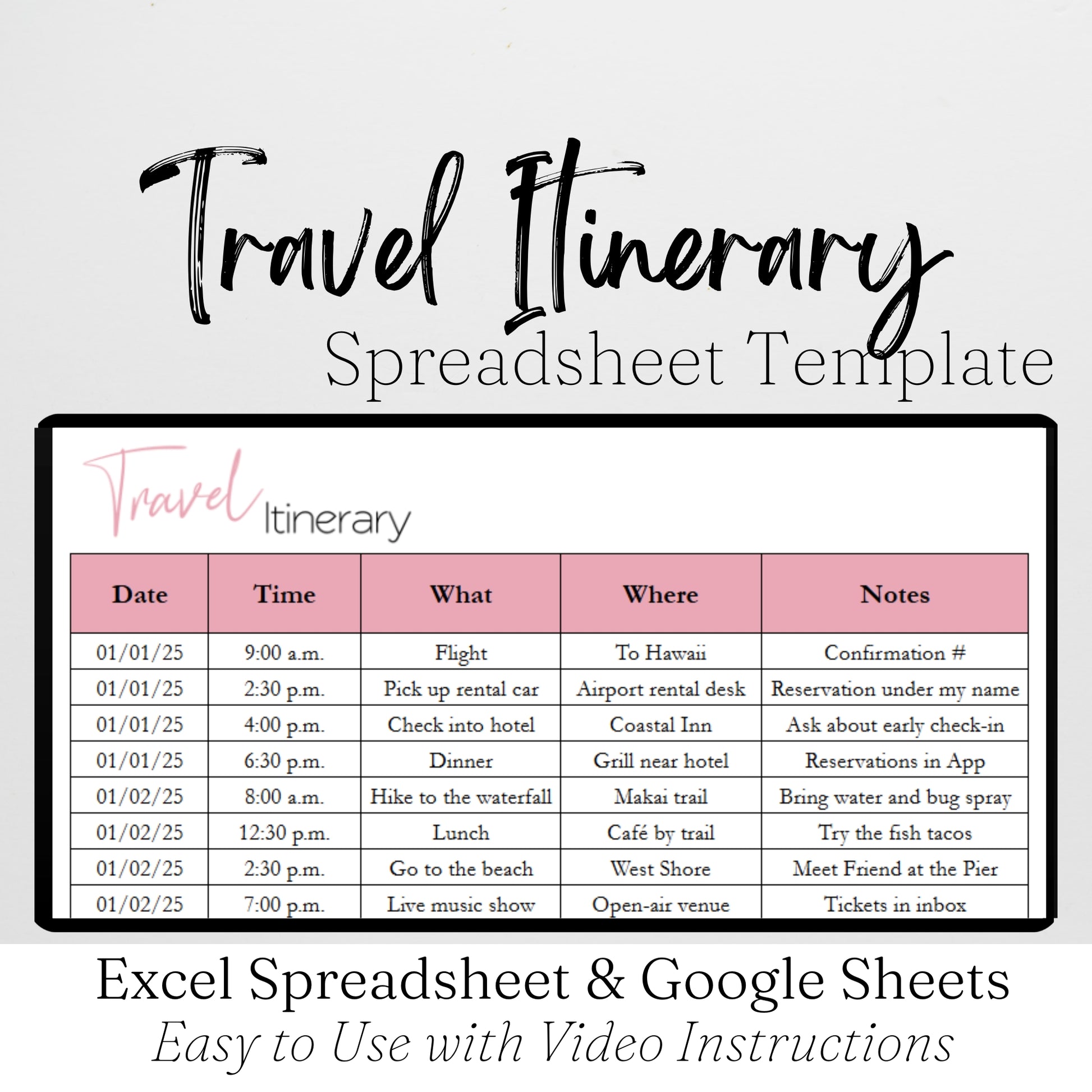 Travel Itinerary Template Google Sheets and Excel Spreadsheet