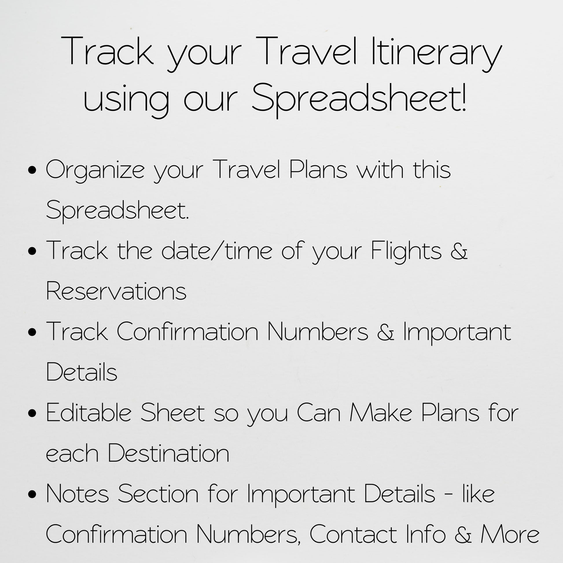 This travel packing list will help you to stay organized when planning a trip. This packing list spreadsheet will help you to pack for international travel, cruise trips, beach vacations, business trips and more. Â