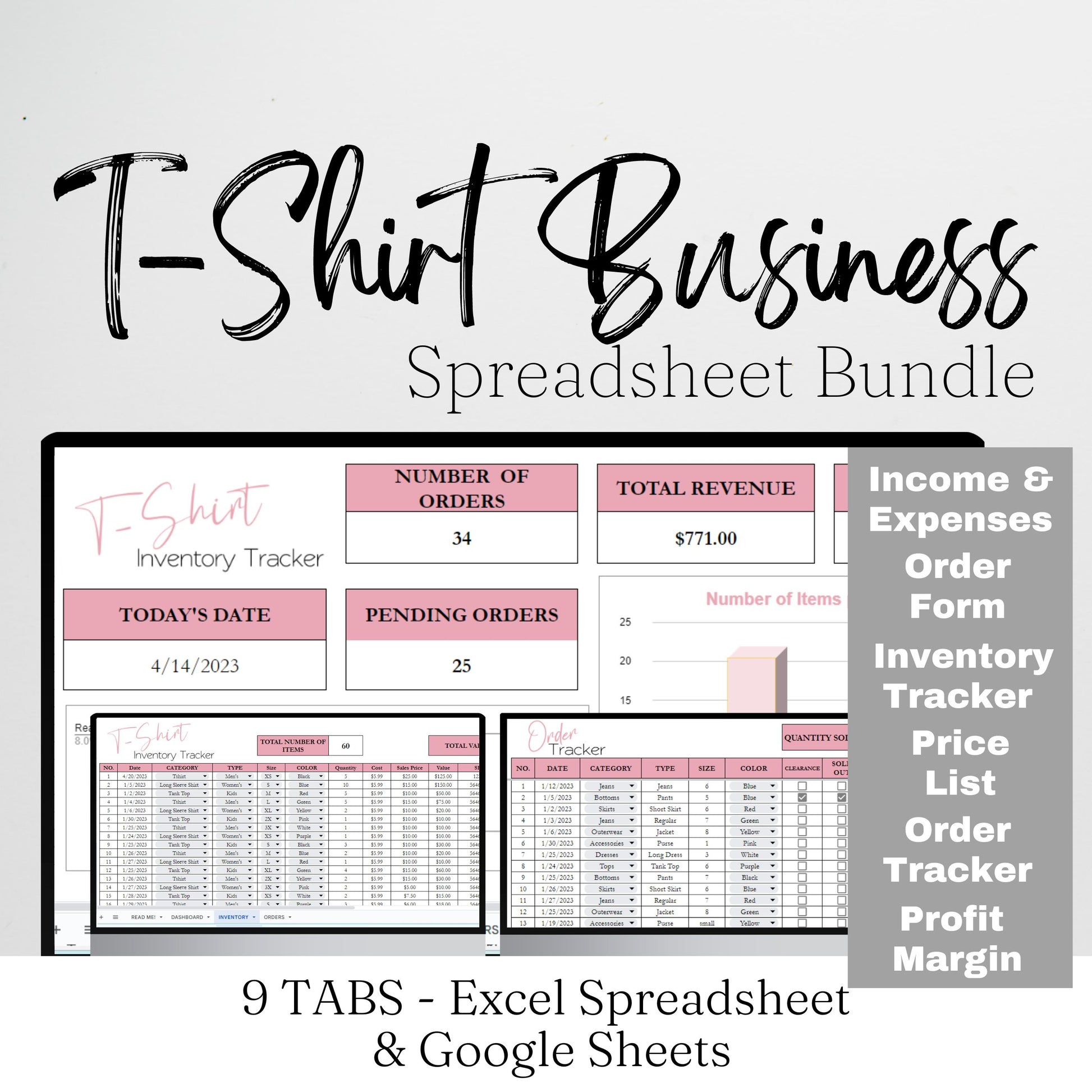 Tshirt Business Bundle Google Sheet and Excel Spreadsheet